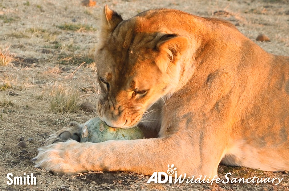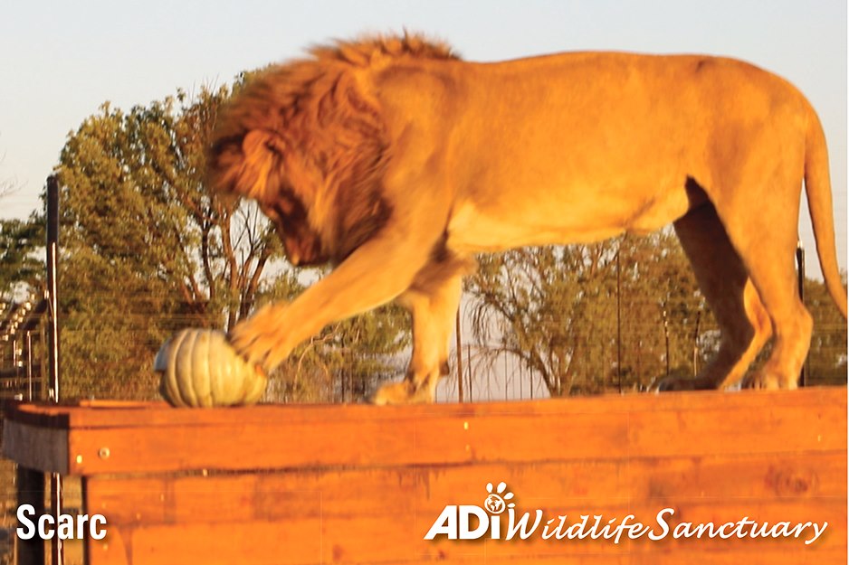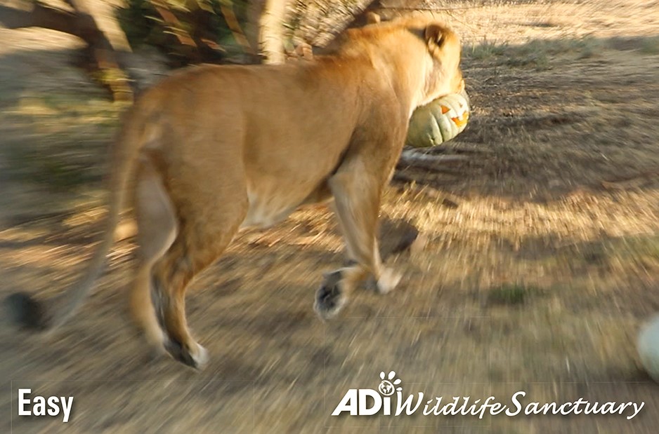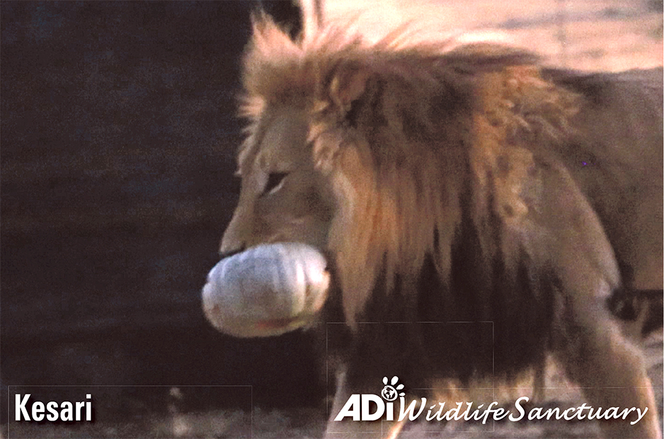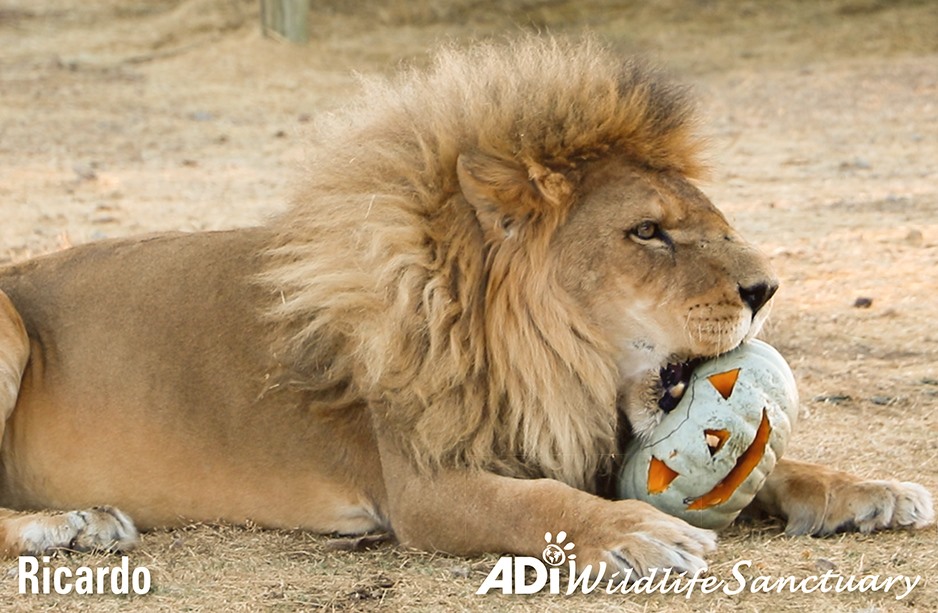 HAPPY HALLOWEEN! As the sun set at the ADI Wildlife Sanctuary, the rescued lions were given pumpkins with treats to play with!