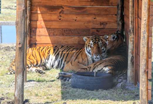 Since their arrival at the sanctuary, 5-year-old Sasha and Kumal have been on the move, graduating to their main habitat after a period of observation in a smaller enclosure – the most space they had ever known. Removed from a circus in Guatemala during the latest ADI Operation Liberty mission, Sasha and Kumal now have access to a 2.5 acre territory with all of the features that our other animals enjoy plus for the tigers, natural pools for them to relax and cool off in. When this doting duo aren’t having fun and playing together – their tire swing a huge favorite – you will probably find Sasha and Kumal chilling out in the pool or cuddled up together asleep.