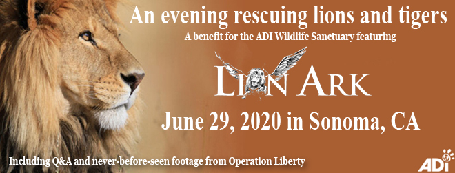 This special fundraiser will also feature: never-before-seen footage from the latest ADI rescue mission in Guatemala, real-life rescue stories and Q&A with ADI founders Jan and Tim. Hosted by Sonoma veterinarian Dr. Howard Rosner, who escorted the 17 lions and tigers on their epic journey in January from Guatemala to South Africa, and to the ADI Wildlife Sanctuary, their forever home.
