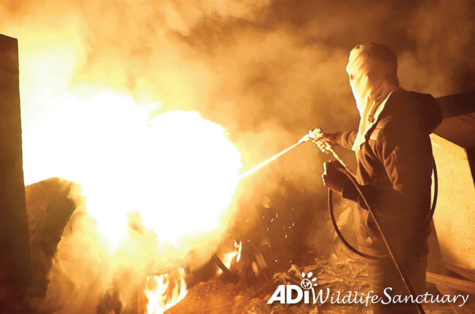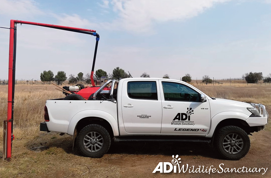 Thanks to our ADIWS supporters, we have access to five mobile fire fighters (water tanks with power hoses that fit on the back of trucks), with three at the sanctuary at all times and our security team carrying the others. The Sanctuary is surrounded by firebreaks, each animal habitat is surrounded by firebreaks, with the feeding camp/houses as their safe area.