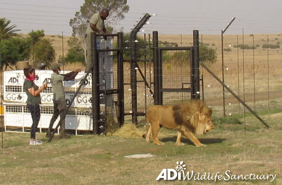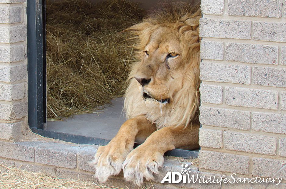 Bolillo returned from hospital to the ADI Wildlife Sanctuary yesterday with a new treatment regime for his arthritis and is moving around Augie Habitat more comfortably. Bolillo was rescued from a circus in Colombia seven years ago, where he and another lion had lived in a space the size of a queen-sized bed for almost a decade. With poor food, no exercise and living on urine-soaked boards, little wonder arthritis and other ailments catch up with these lions in later life.