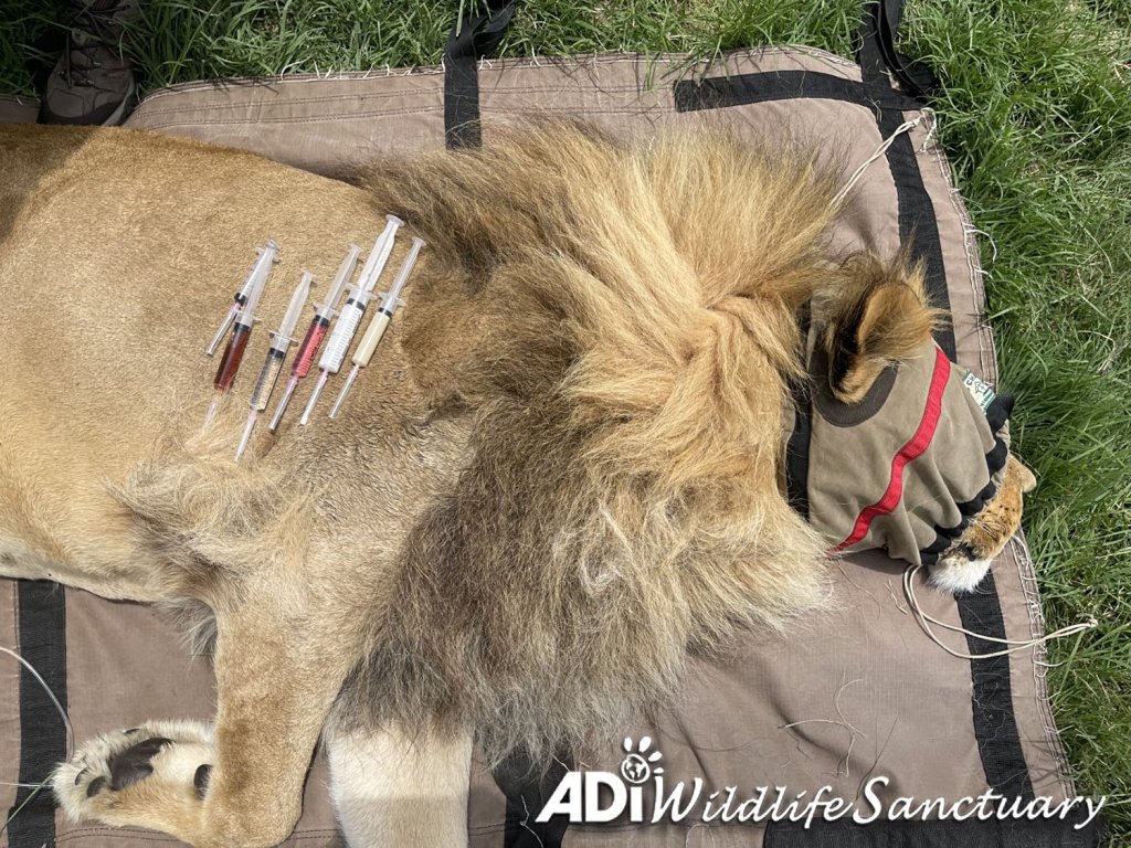 Dr Caldwell treated two of our seniors Simba and ReyA, rescued from a small circus cage in the town of Ayacucho in the Andes mountains, seven and a half years ago. Simba has chronic arthritis in his hind legs causing him to have a bow-legged walk. Worryingly, he had started to limp on a front leg – very serious for a lion as they carry much of their weight on the front legs and push off from them. Our suspicions that Simba had overdone it, climbing up and down from his platform, were confirmed after successful treatment from Dr Caldwell. The ADIWS team quickly added additional steps to Simba’s main platform, and within 24 hours, he was back on top and surveying the world. Puzzlingly, ReyA is starting to lose his mane. He is otherwise in good shape, and Dr Caldwell found no infection or parasites, so took blood samples to investigate a possible hormone imbalance. Both lions were up and roaring before the sun set.