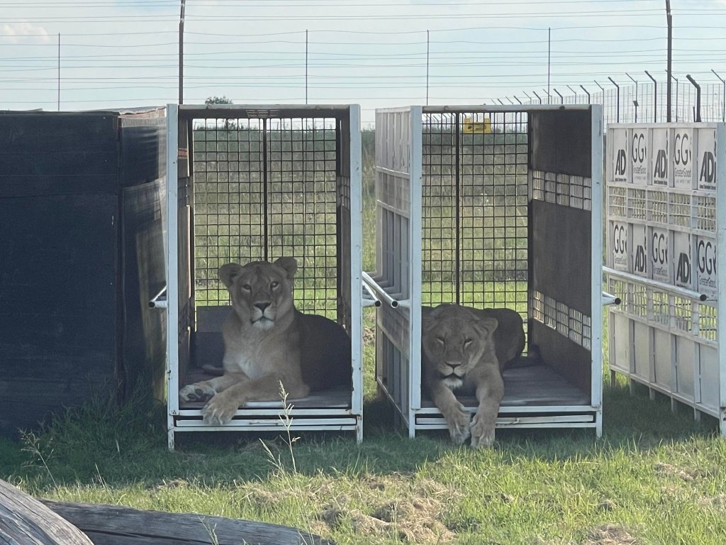 We will be using a natural brain chemical present during mothering to relax the lions, allowing us to move them to new habitats (neutral territory), where they will steadily be introduced. Those moving home, Africa, Kiara2, Rolex, Bumba, and Iron, are receiving their meals inside the travel crates, which remain open so they can go in and out as they please. They appear to enjoy a lounge about inside, and then climb on top. Watch out for more on Operation Lonely Hearts during the countdown to Valentine’s Day! For now, Africa and Kiara2 seem very pleased to have their old travel crates back!