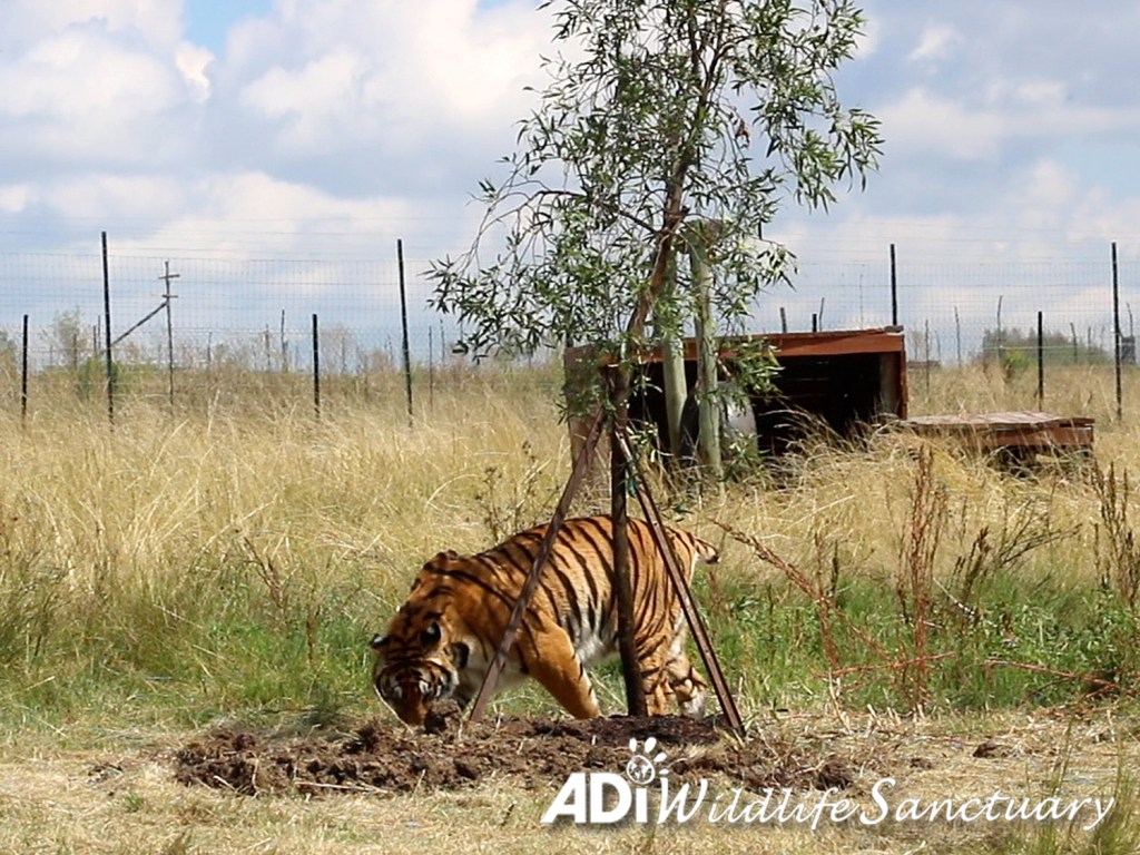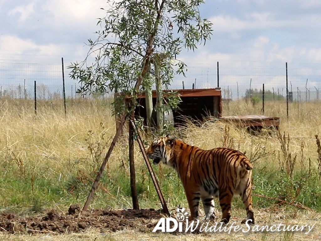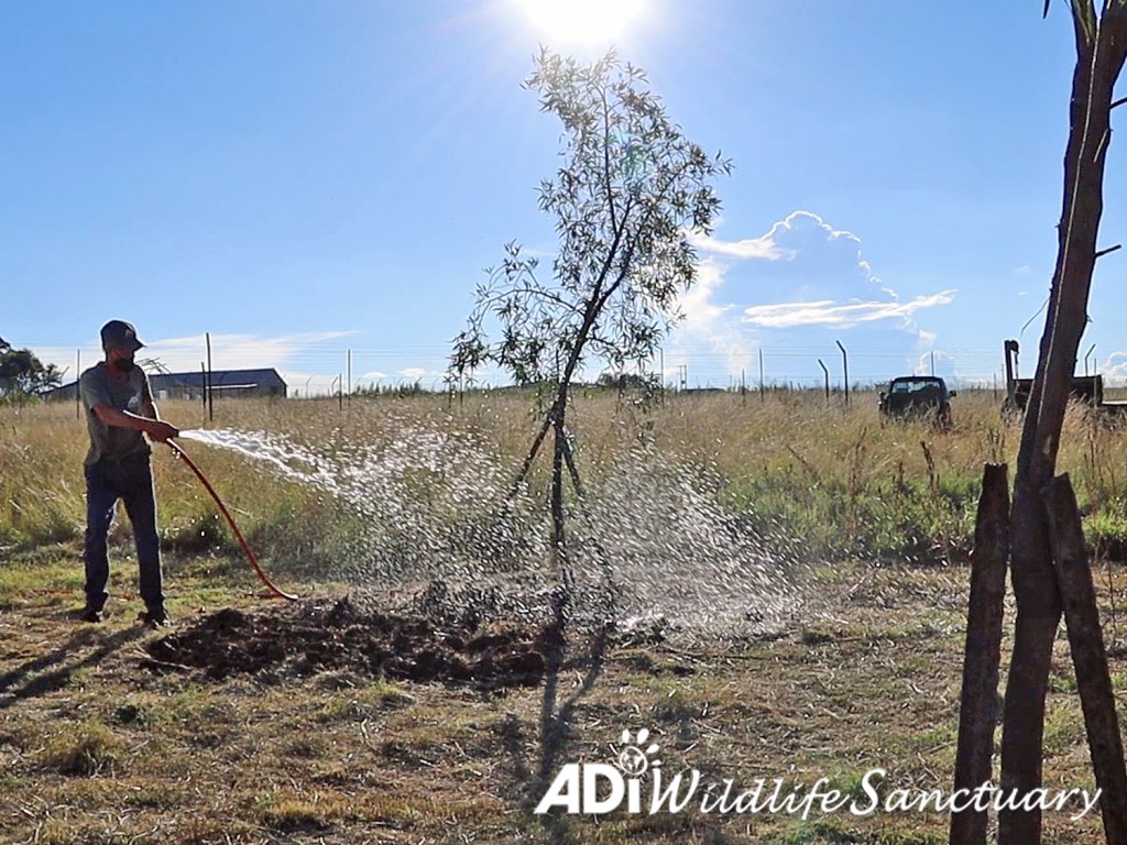 March saw 24 more indigenous karee trees – sponsored by Trees for Tigers USA – planted at the ADI Wildlife Sanctuary in South Africa. This is part of our program of re-wildling the sanctuary land with indigenous plants to encourage local wildlife and provide rich habitats for our rescued lions and tigers. The sanctuary has 455 acres, much of which was denuded by farming, so we are re-planting and giving it back to the animals. These trees are an investment that will grow and grow and provide shelter for generations of rescued animals to come – we just have to keep watering them! Jade, who was rescued from a circus in Guatemala and who lives with sisters Luna, Sun and Moon, seems to approve. Although she didn’t help by tearing up the pipes we planted to water the trees and turning them into toys for her and her Spice Girl sisters!