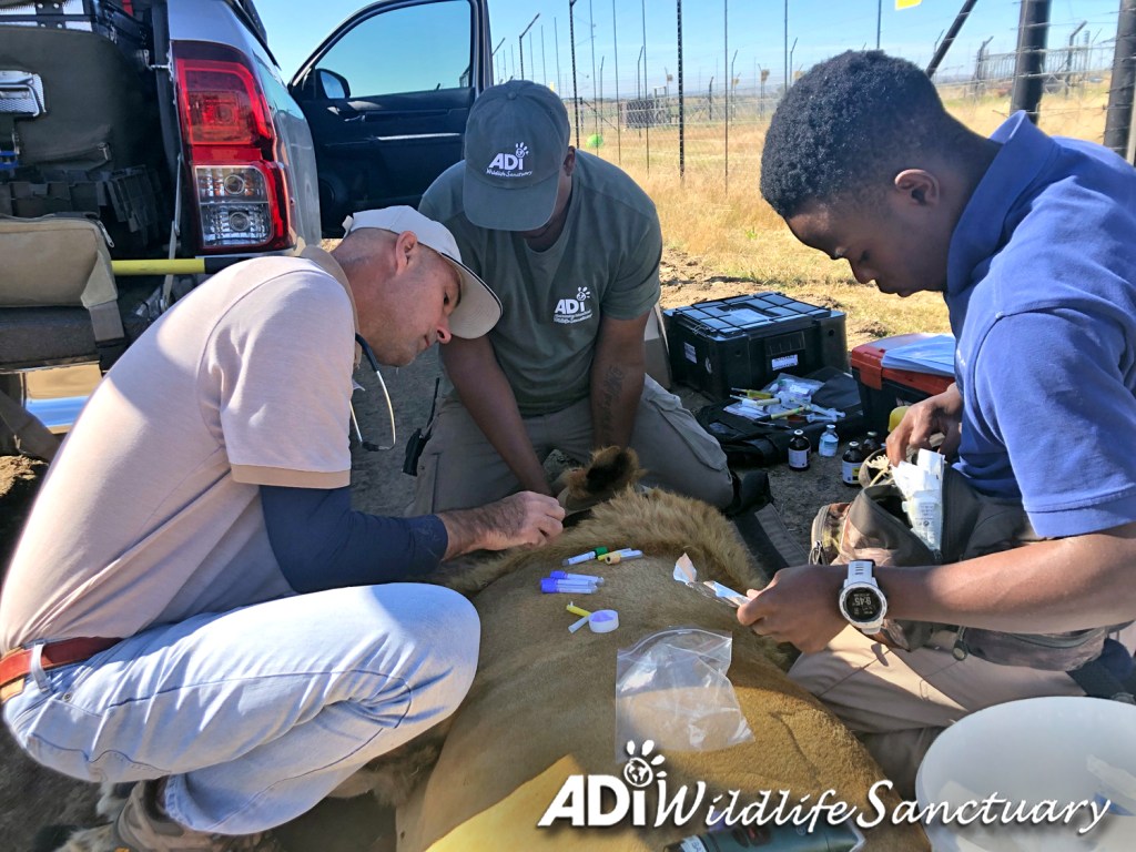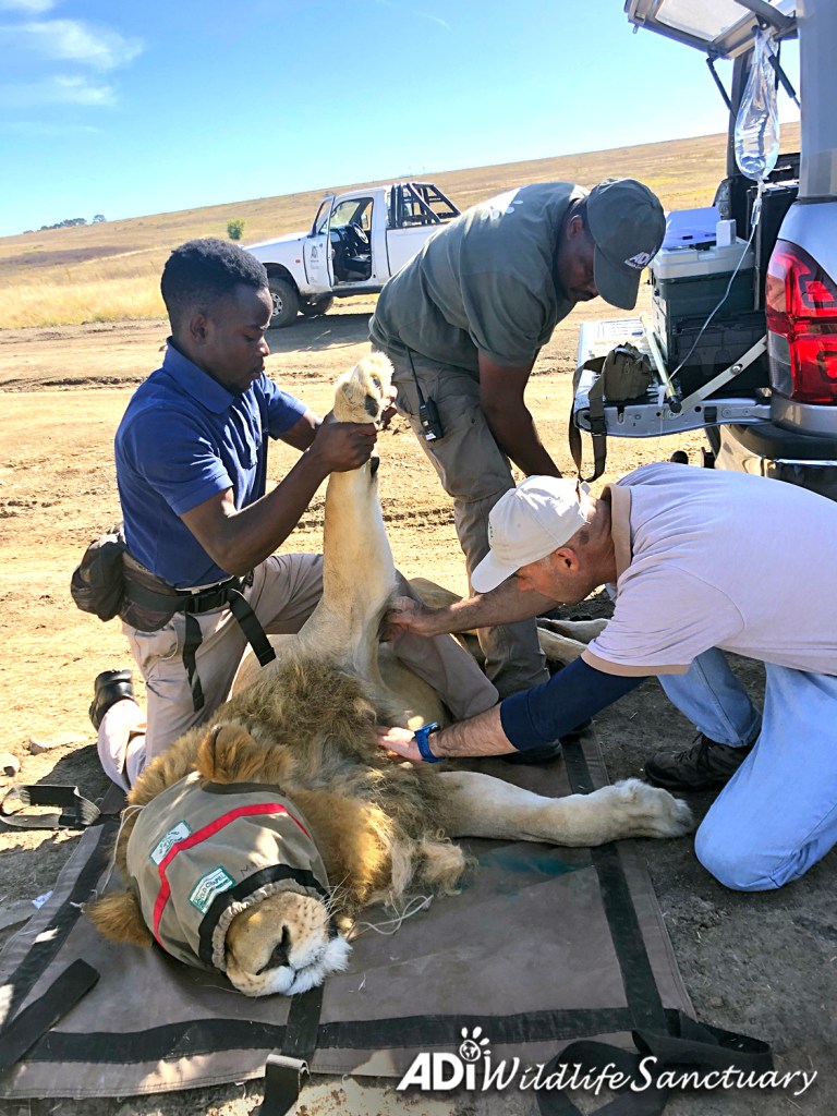We understand the importance of social relationships for lions, so it was no surprise to see Simba watch over his brother ReyA as he recovered from sedation. Rey was examined by Dr Peter Caldwell after he developed a limp and was off his food. Simba sat at the door of their house until his brother was fully conscious. Rey is limping less now and has eaten a little more this week but remains subdued and we are all concerned. He is being closely monitored and Dr Caldwell is adapting his medication. WE ARE ALL HOPING REY WILL GET WELL SOON.