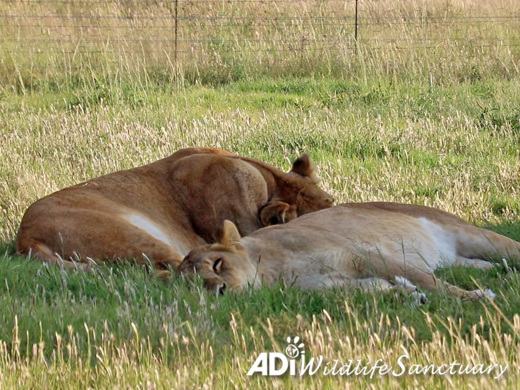 Sometimes you want your own space! ROLEX (10 years) and sisters AFRICA (10) and KIARA (15), rescued from a circus in Peru, have made it clear they like things as they are! In their shared home at the ADI Wildlife Sanctuary in South Africa, they enjoy sitting and even sleeping close to each other on opposite sides of the fence, but don’t want to live in the same space. Although we were able to get the lions together a few times, it was clear that Africa and Kiara are just too close for another to join their group. We are pleased we explored this for several weeks and now understand the relationship the lions like. So, we will split the habitat into two; they can all enjoy a main habitat, platforms, dens, a feeding camp, and night house. They will be right next to each other and can communicate, maybe rub through the fence if they want, but in their own space.