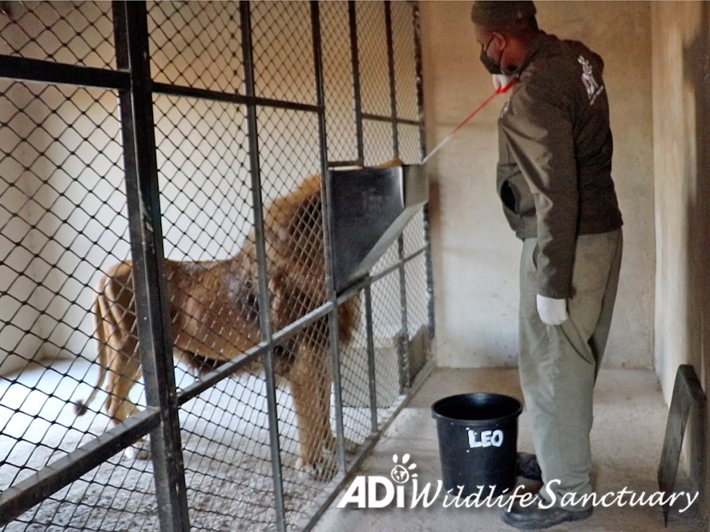 As he walked into the ADI ‘Freedom cage’, we got our first good look at the Leo we have come to know and love, as he playfully rolled in the hay, his first ever soft bedding.