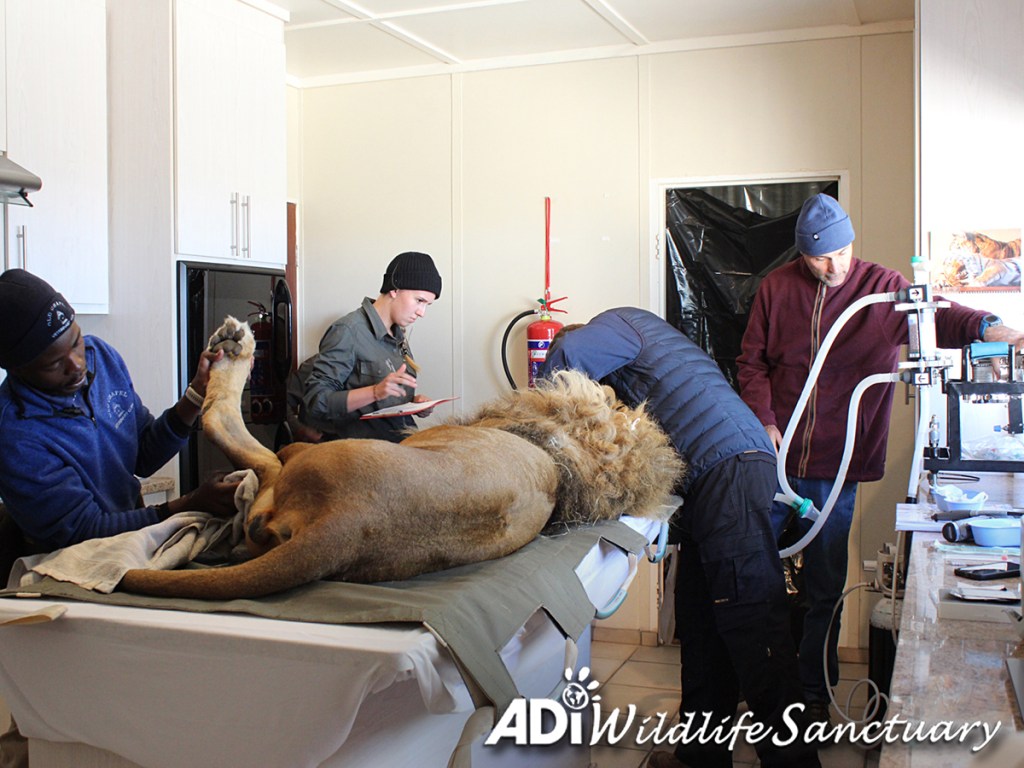 Good to see Iron looking back to his usual magnificent self after over three hours of dental surgery at the ADI Wildlife Sanctuary at the weekend. Dr Peter Caldwell was at the sanctuary on Saturday assessing the animals and giving vaccinations. Dr Gerhard Steenkamp performed three root canals, two extractions, repaired a fractured molar in Iron who was originally rescued from a circus in Colombia.