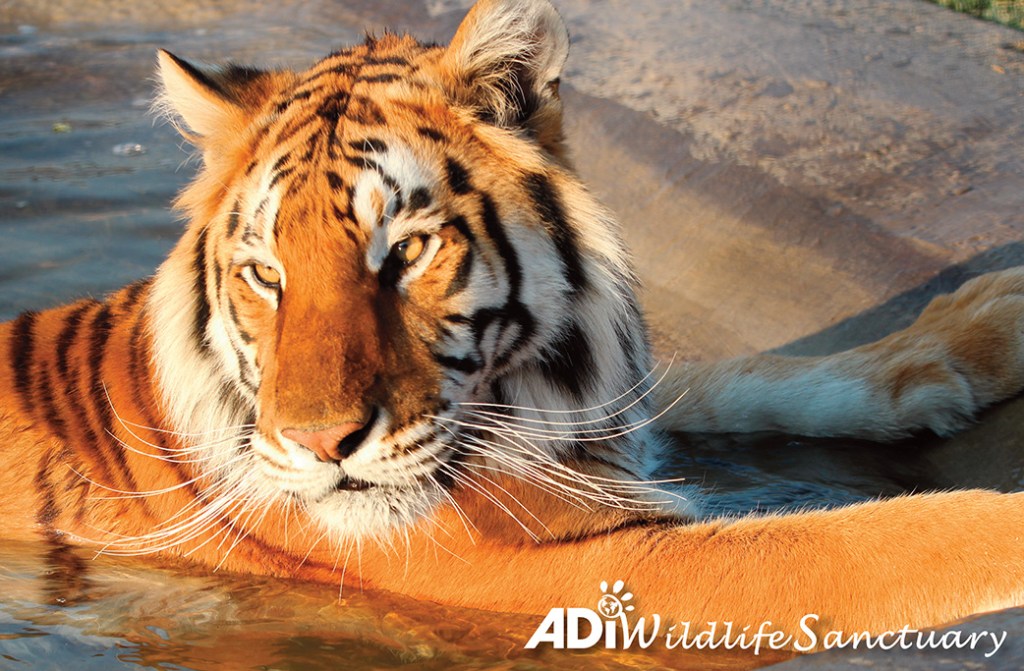 Moon, one of 15 tigers we rescued from a circus in Guatemala, marks the beginning of Spring in South Africa with a dip in the pool. She was a small cub when we rescued her and is now a magnificent tigress living with her sisters Luna, Jade and Sun at the ADI Wildlife Sanctuary.