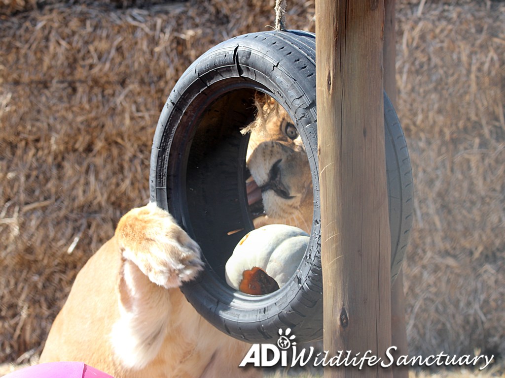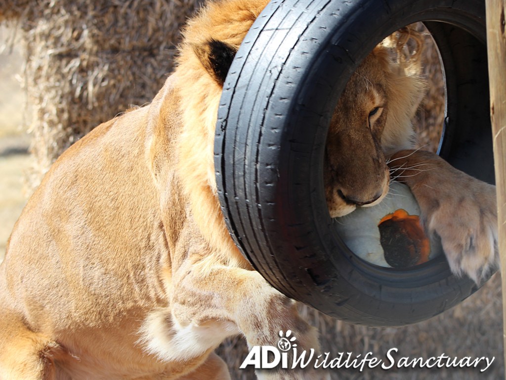 Just a small amount – for example the cost of a cup of coffee – helps provide treats and fun for the lions and tigers at ADIWS.