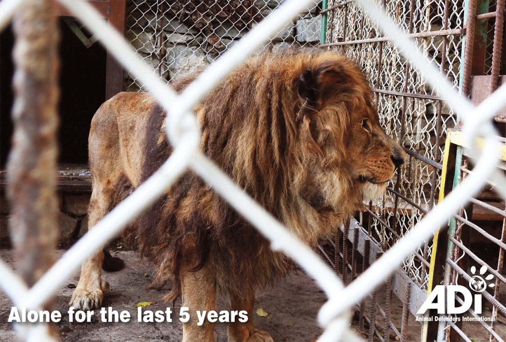 Sweet lion Ruben has been alone for five years, in a private zoo which has closed. The other animals were relocated, but there was no room for him. At ten years old, he lost his whole family. He is close to an area in Armenia where there is an ongoing conflict, so before we can rescue him, we need to get him to a temporary place of safety.