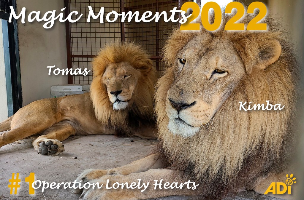 One of the greatest cruelties of captive wildlife is the isolation of the victims. Living without anyone of their own kind. Ending the loneliness is one of our missions and in 2022, we began Operation Lonely Hearts at the ADI Wildlife Sanctuary to bring together solitary animals. We saw the magic when Easy, a circus survivor from Colombia (who had lost her sister Shakira) and David, a circus survivor from Peru (who lost his sister Rapunzel) became best of friends. Lion brothers Tomas and Kimba were reunited after being separated as cubs in a circus in Guatemala.