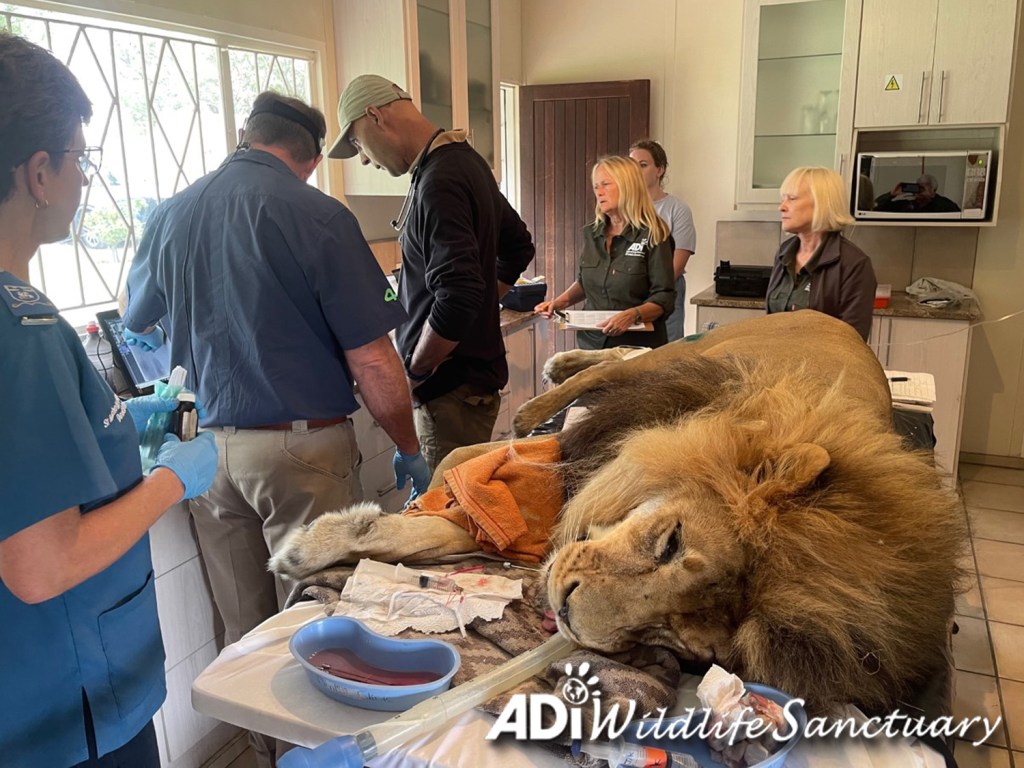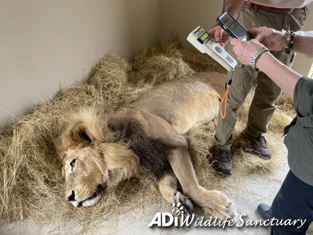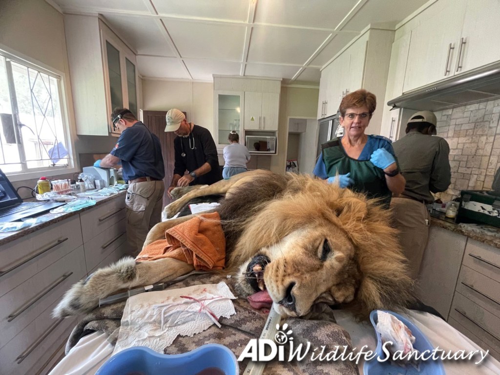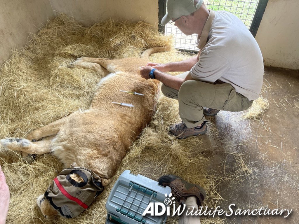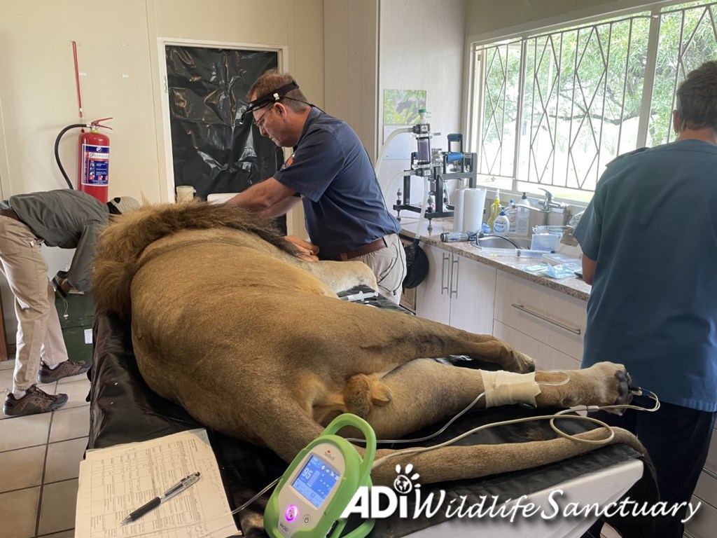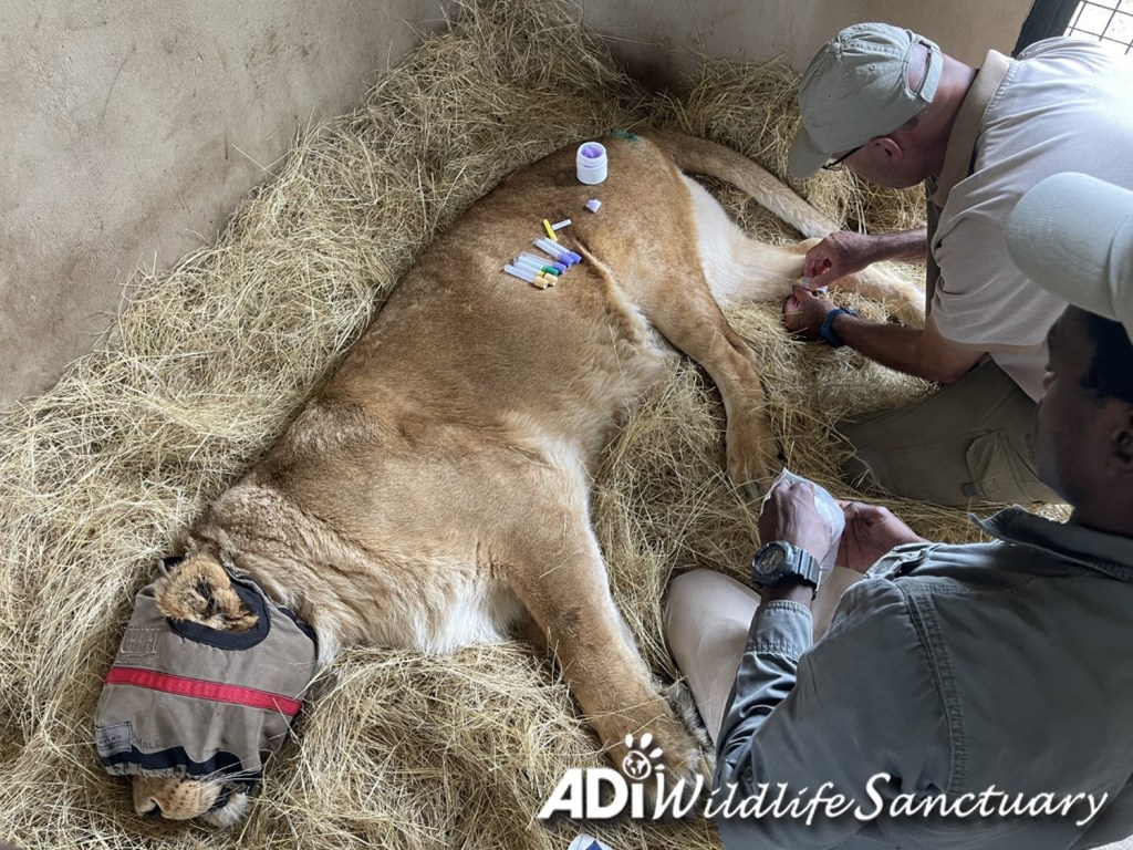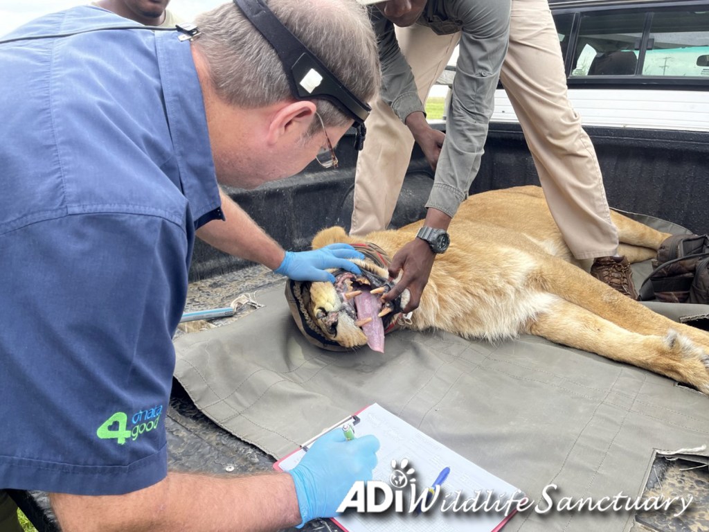Friday was an intense day with Dr Peter Caldwell and Professor Gerhard Steenkamp doing health and dental check-ups on seven lions: Rey Cusco, David, Tarzan, Tanya, Sasha Lioness, Kimba and Tomas. Rey Cusco and David had dental surgery. Tarzan, Tanya, Sasha Lioness, Kimba and Tomas all moved to new larger habitats. Everyone had recovered from sedation on Saturday and are eating again. If you missed them, you can check out the recordings of the live reports on our Facebook page.