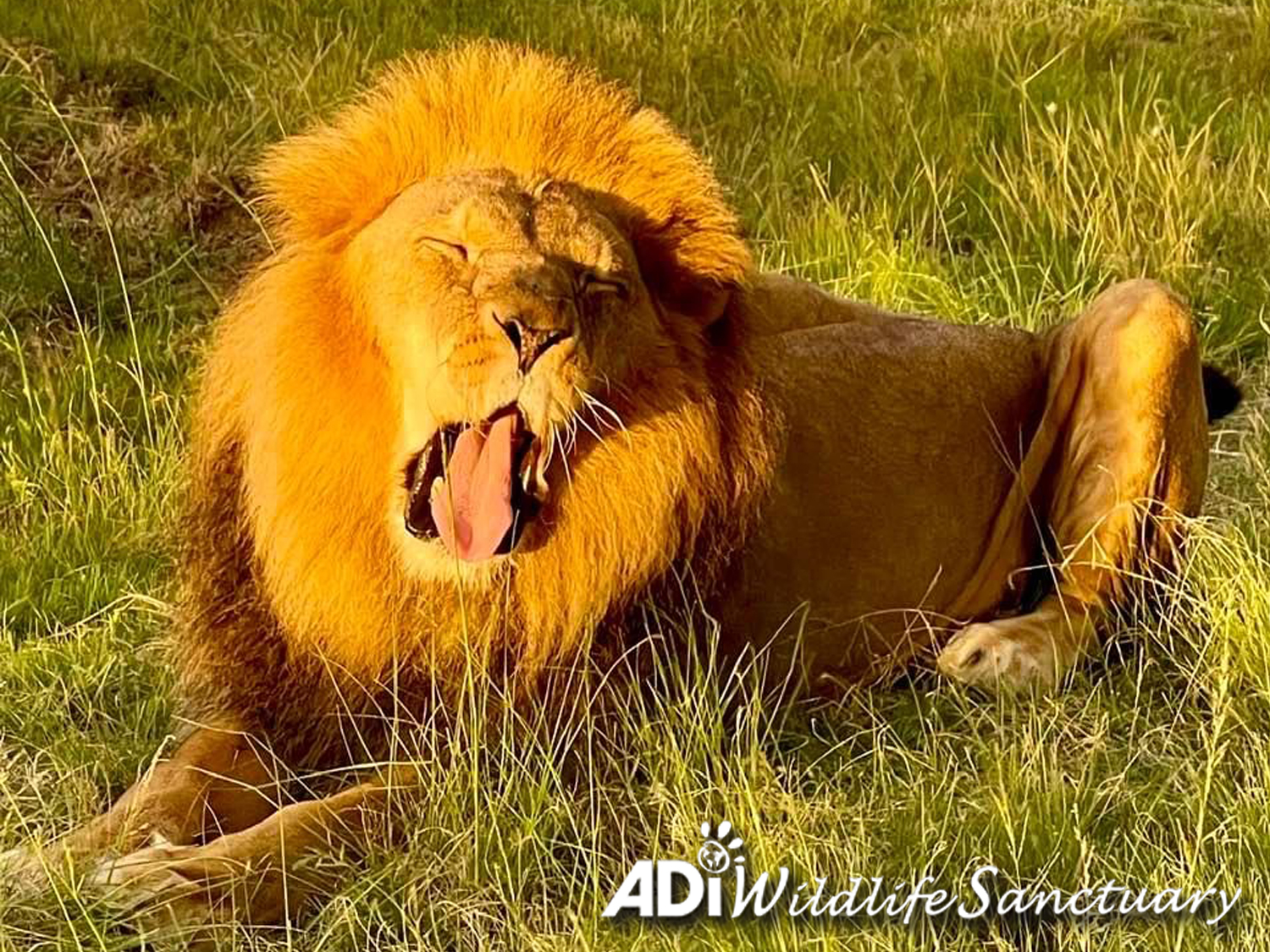 Tomas enjoys a huge yawn as he lies contentedly in Avi habitat that he shares with Kimba at the ADI Wildlife Sanctuary in South Africa. The brothers were separated as cubs in a Guatemala circus, then reunited after ADI rescued them. Sasha lioness, rescued from the same circus, lives in Jacque Habitat next door and shares a fence line with the boys.