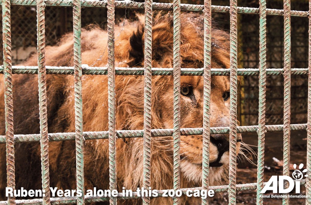 We learned of Ruben living in a tiny cage in an abandoned, private zoo in Armenia. The businessman owner had passed away and the animals were relocated, all except lonely Ruben. Ruben’s world fell silent and for five long years his plaintive roars have gone unanswered.