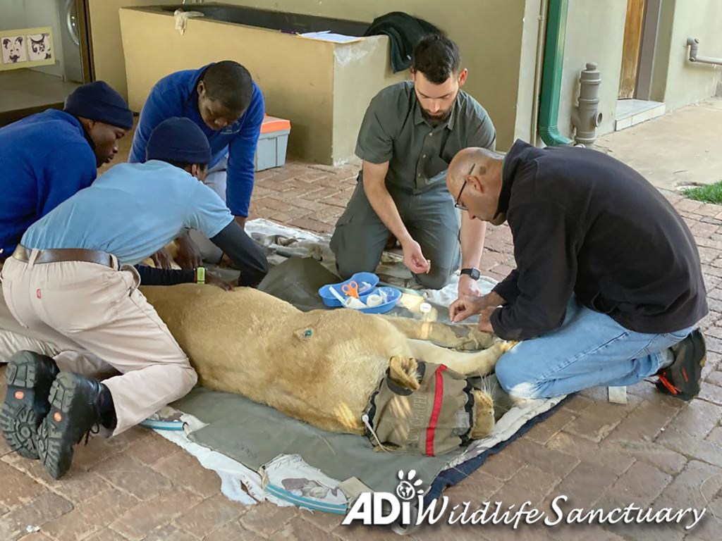 At 17 years of age, Easy is the oldest lioness at the ADI Wildlife Sanctuary, and the ill-treatment from years in a circus will always have an impact on these brave survivors. However, we know that Easy will be receiving the best possible care while at Old Chapel, and, with your thoughts and prayers, we hope that she can return to the company of her companion, David, soon.