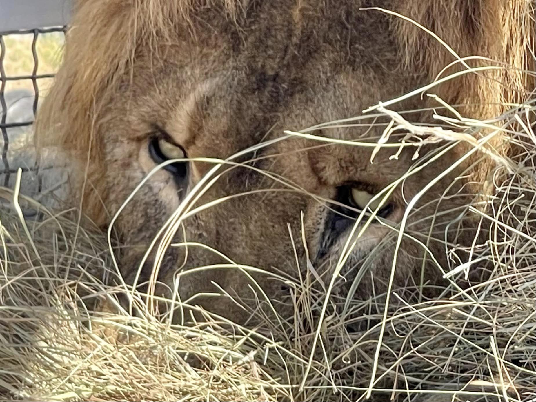 Ruben has been watching from the crate. He is still sleepy. He was sedated for travel two days ago and today for a veterinary check, so is sleeping it off. He was covered with a shade cloth, and there was a nice breeze, but he has since been insulated with hay bales and will be monitored through the night. Earlier, Rey Ayacucho came over to watch him (third slide below).