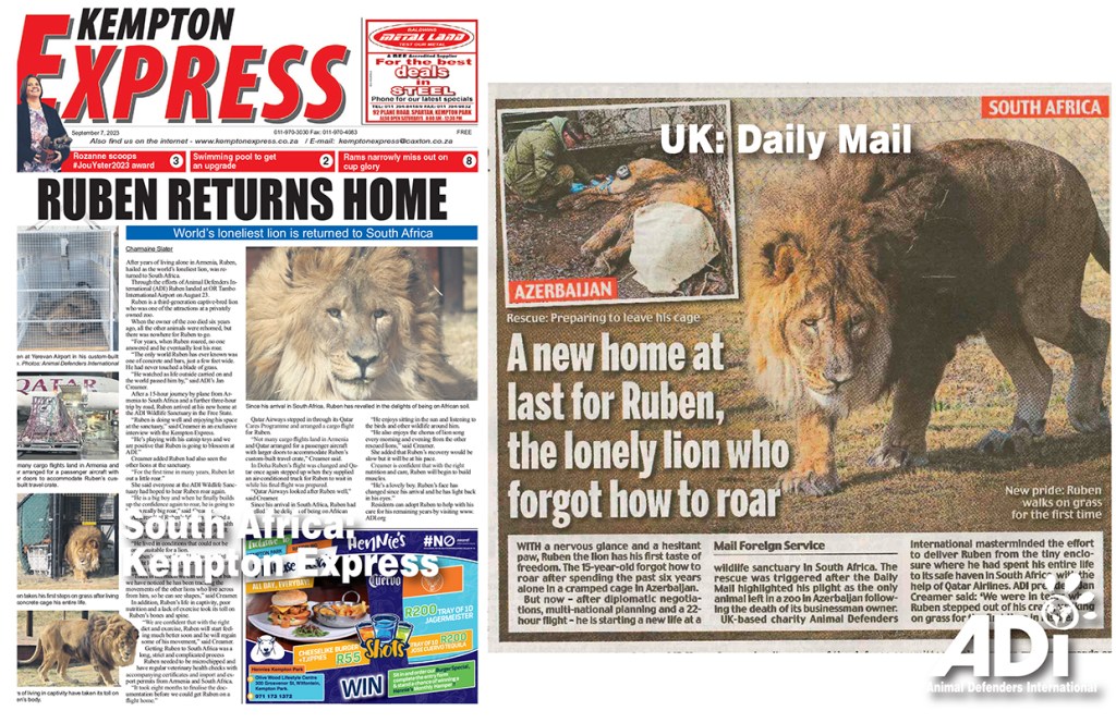 The story of our rescue of Ruben the lion from Armenia – dubbed “the loneliest lion in the world” – exploded worldwide, with coverage in the US, UK, South Africa, Australia, Azerbaijan, Belgium, Bosnia and Herzegovina, Brazil, Costa Rica, Croatia, Czech Republic, Denmark, Finland, Germany, Greece, Hungary, India, Indonesia, Italy, Montenegro, Pakistan, Poland, Portugal, Romania, Thailand, Turkey, Ukraine, and Vietnam.