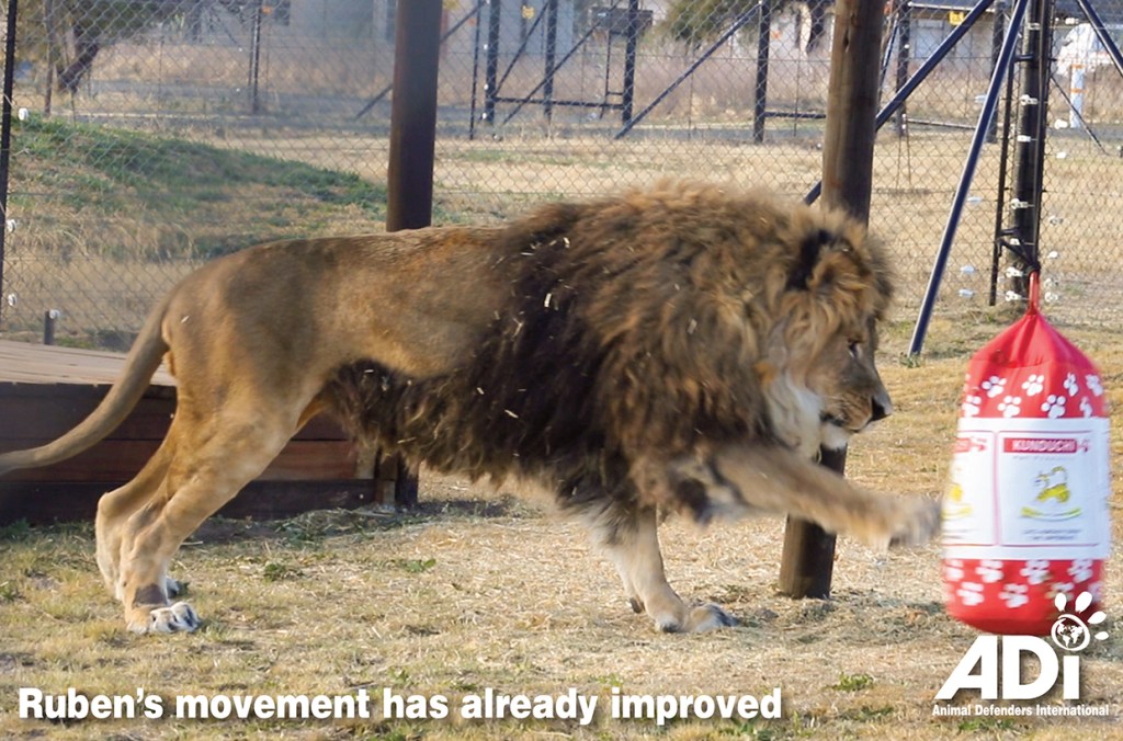 Ruben’s progress has been really impressive. He is a fighter. His whole demeanor has changed since his arrival at the ADI Wildlife Sanctuary. Gone is that anxious, angry, scared face, his eyes large and rounded. His movement has improved more than we could have hoped in the two weeks since he arrived. When the Resident Welfare Team members call him, he strides with strength and purpose to come for his ‘treat’ (his supplements hand fed with tongs).