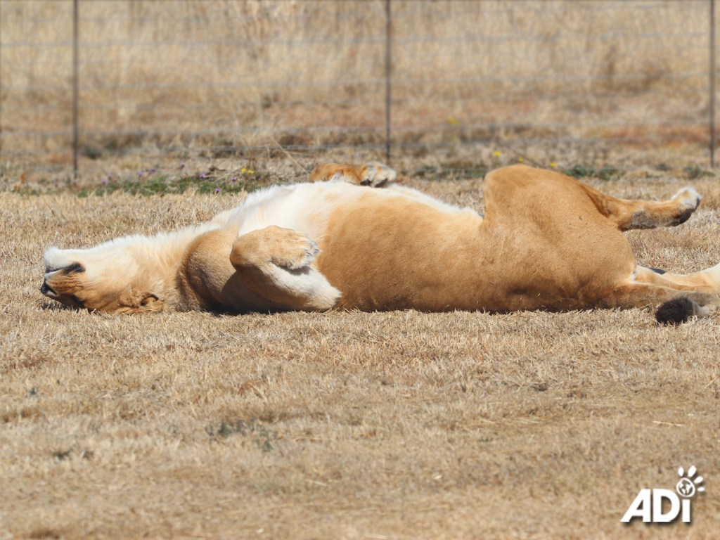 Siblings Africa, Kiara2 and Rolex are clearly relaxed after a huge wildfire was stopped from entering the ADI Wildlife Sanctuary yesterday. The alarm was sounded about a fast-moving fire 25 miles away. The ADIWS team loaded our fire fighters and began bringing the lions and tigers into their safe zones. Within 40 minutes 26 lions and tigers were in the feeding camps and the ground was being soaked. Five lions were taking their time coming in – father Leo and children Africa and Kiara2, and Tarzan and Tanya (who never hurry for anyone). Nevertheless the team persevered and everyone was in their safe zones within an hour of the alarm – unsurprisingly, Leo was the last to potter in. Strong winds drove the fire and it reached our north and west perimeters about four hours later, where it was stopped by the brave efforts of our team. See video of the shocking events earlier.