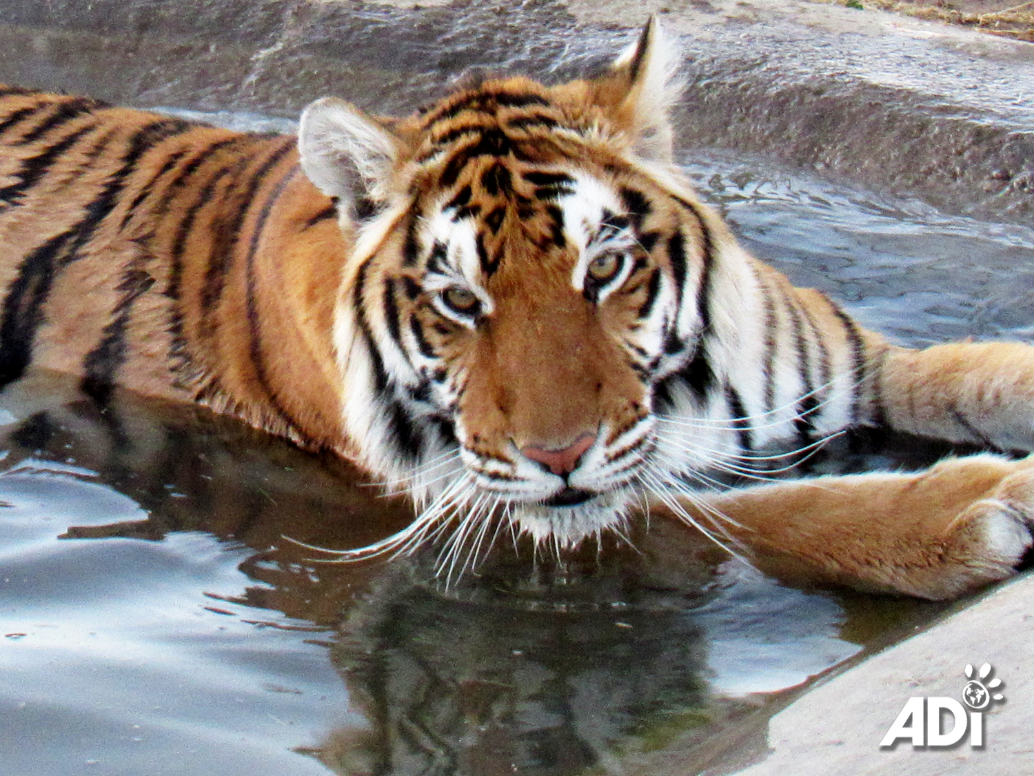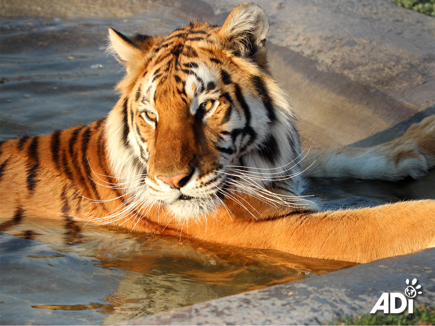Before ADI rescued them from a circus in Guatemala, as tiny babies Sun, Moon, Jade and Luna were used for photos with the public, and their future was very bleak. Now the sisters are free to do whatever they please in their tiger territory, which features two pools and a lake.
