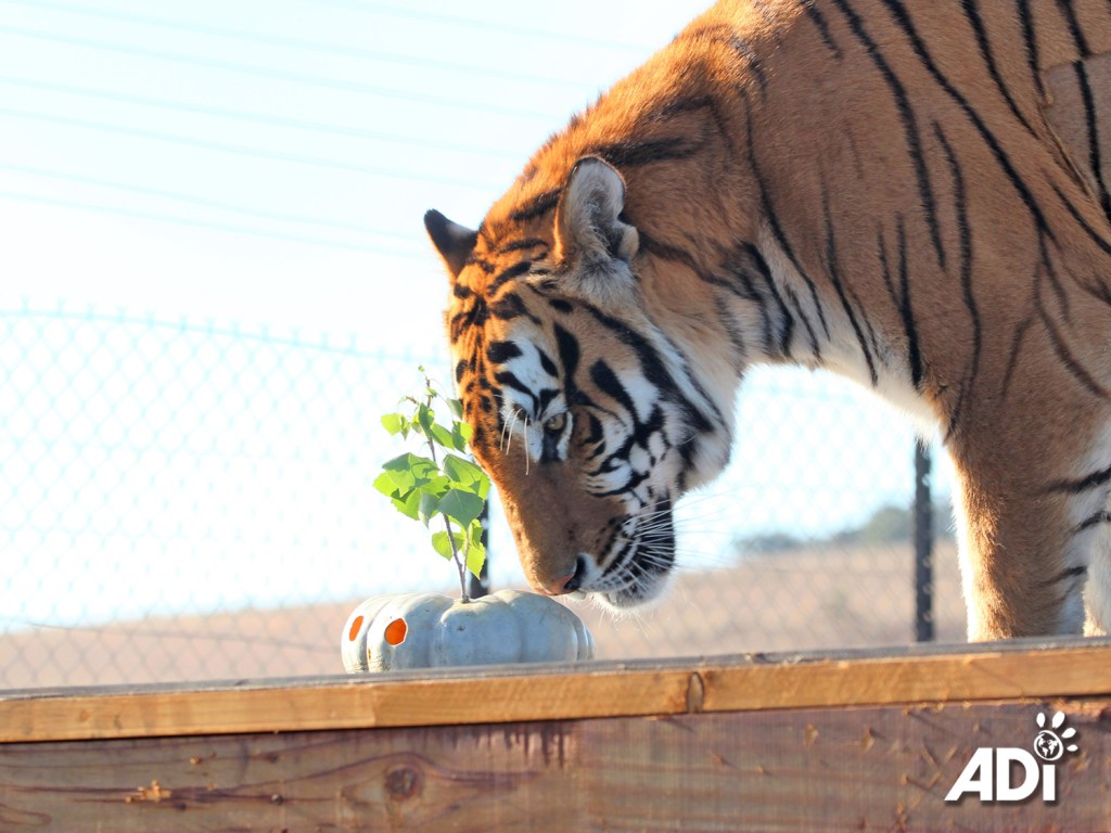 Halloween is just days away, but thanks to ADI supporters who have donated to our special appeal, the lions and tigers at the ADI Wildlife Sanctuary have already been given pumpkin treats to kick off the festivities. This year, when you sponsor a pumpkin, you’re also supporting the daily care of a rescued big cat.