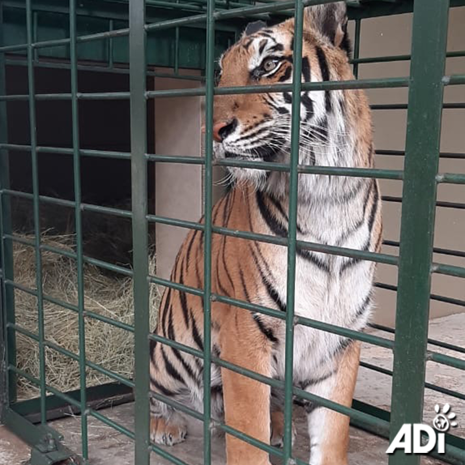 Our beloved, boisterous, and naughty leader of the ADI Wildlife Sanctuary Spice Girls, Jade, is in hospital. Jade bounced straight into her travel crate, seemed content throughout the journey and is now settled in Old Chapel Veterinary Clinic. Dr Caldwell is checking out the cause of her limp and taking the opportunity to assess her spondylosis – which she, her sister Luna and Ruben all have. This was cause by malnutrition in the circus and causes her to have a goose-stepping walk. We are all hoping the limp is just down to over-zealous play and our very own Tigger will be bouncing around her habitat again soon.