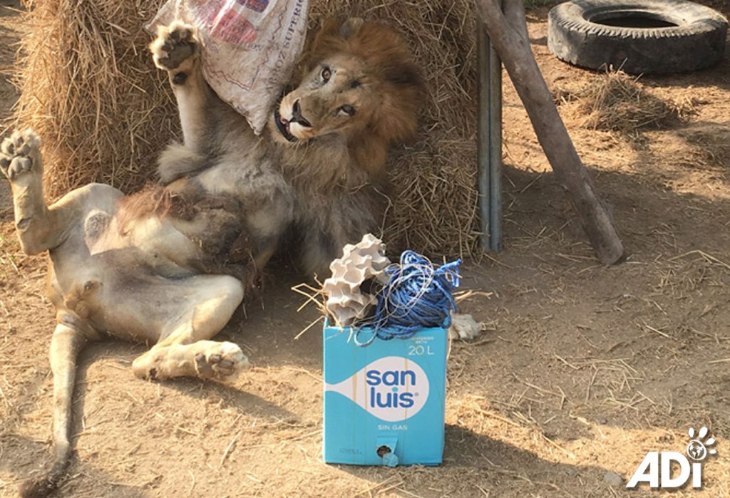 Slowly Leo regained his strength at the ADI Rescue Unit, and his inner kitten emerged. He became one of the most playful lions. The circus had smashed all four of his canine teeth and so although he loved to chase footballs, it would take a long time for him to slowly burst them. He had root canals in all four canines.