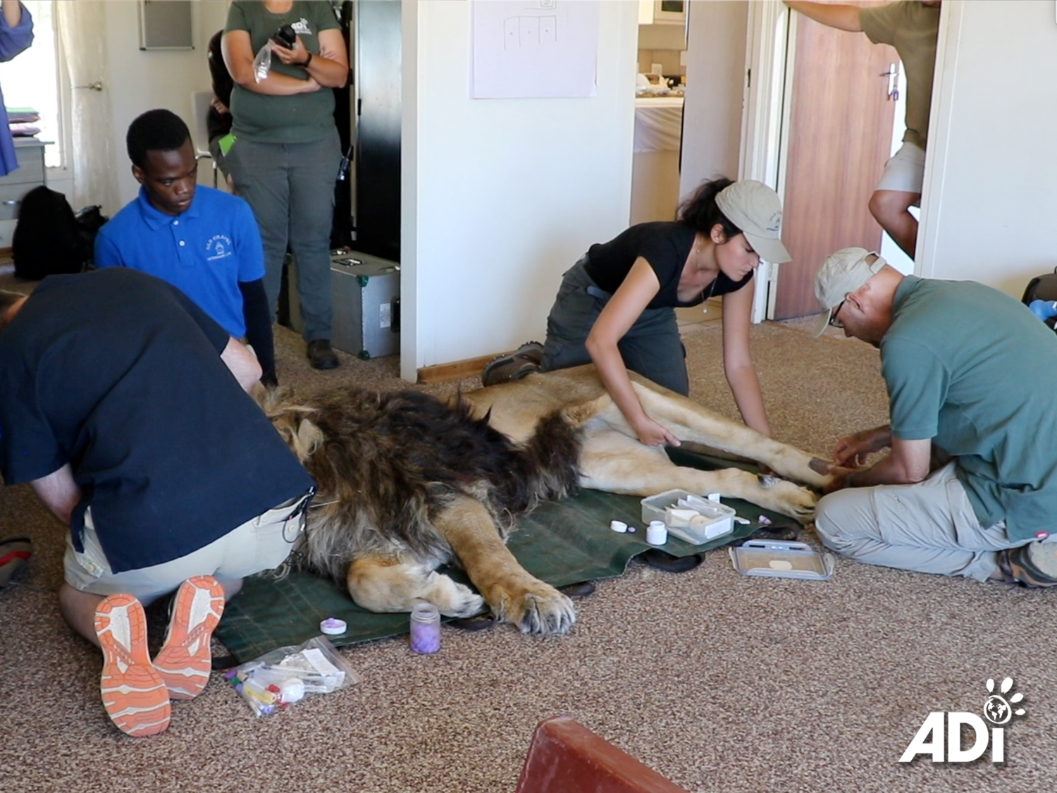 Ruben, the lonely lion who was rescued after being left alone in a closed private zoo in Armenia for five years after all the other animals were removed, today had dental surgery at the ADI Wildlife Sanctuary, South Africa. Ruben arrived at ADIWS in late August with serious difficulty walking and numerous damaged teeth. He has made significant progress walking and veterinarian Dr Caldwell has been working towards building up Ruben’s health and strength ready for dental surgery.