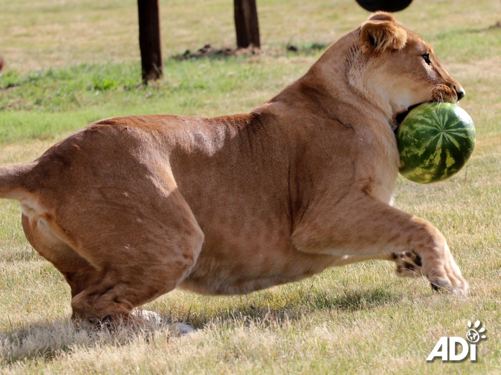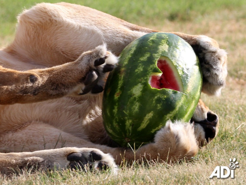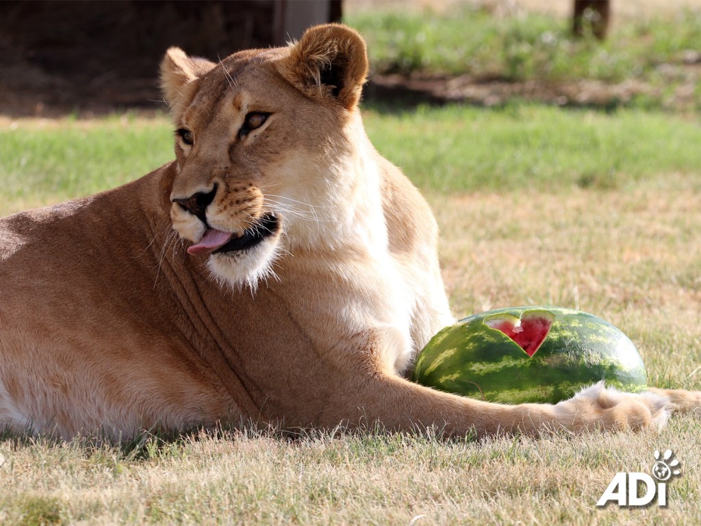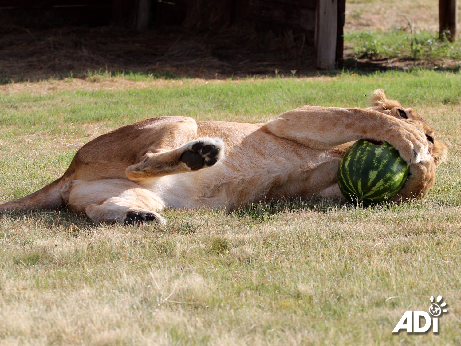 Fun-loving Mahla really loves her different kinds of enrichment and went literally head over heels with excitement for her watermelon at the ADI Wildlife Sanctuary.
