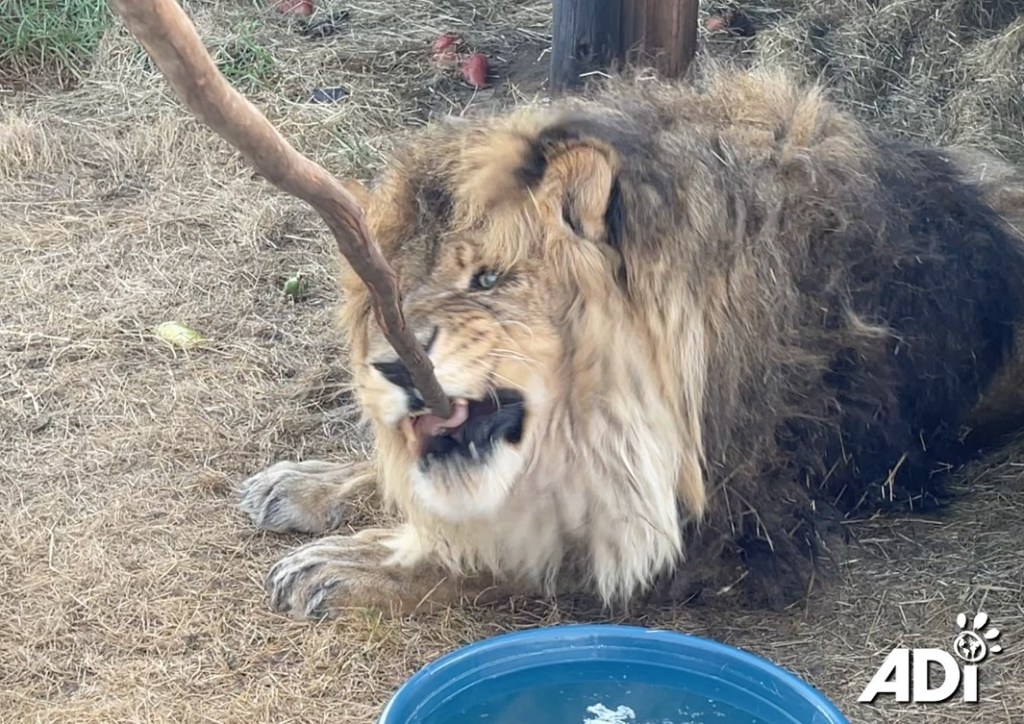Ruben is slowly recovering from his seizure but is not yet fully mobile, his balance has been affected. Despite it all, he seems in good spirits, is responsive to his carers, and has a good appetite. He is living in his outdoor den and comes out to sit in the sunshine. Ruben’s food and medicine is being delivered to him on the end of a stick, from the truck, twice a day. We slowly drive into the habitat to feed him and top up his water. Ruben is being incredibly calm, gentle, and cooperating with our Resident Welfare Team. He appears to understand we are trying to help.