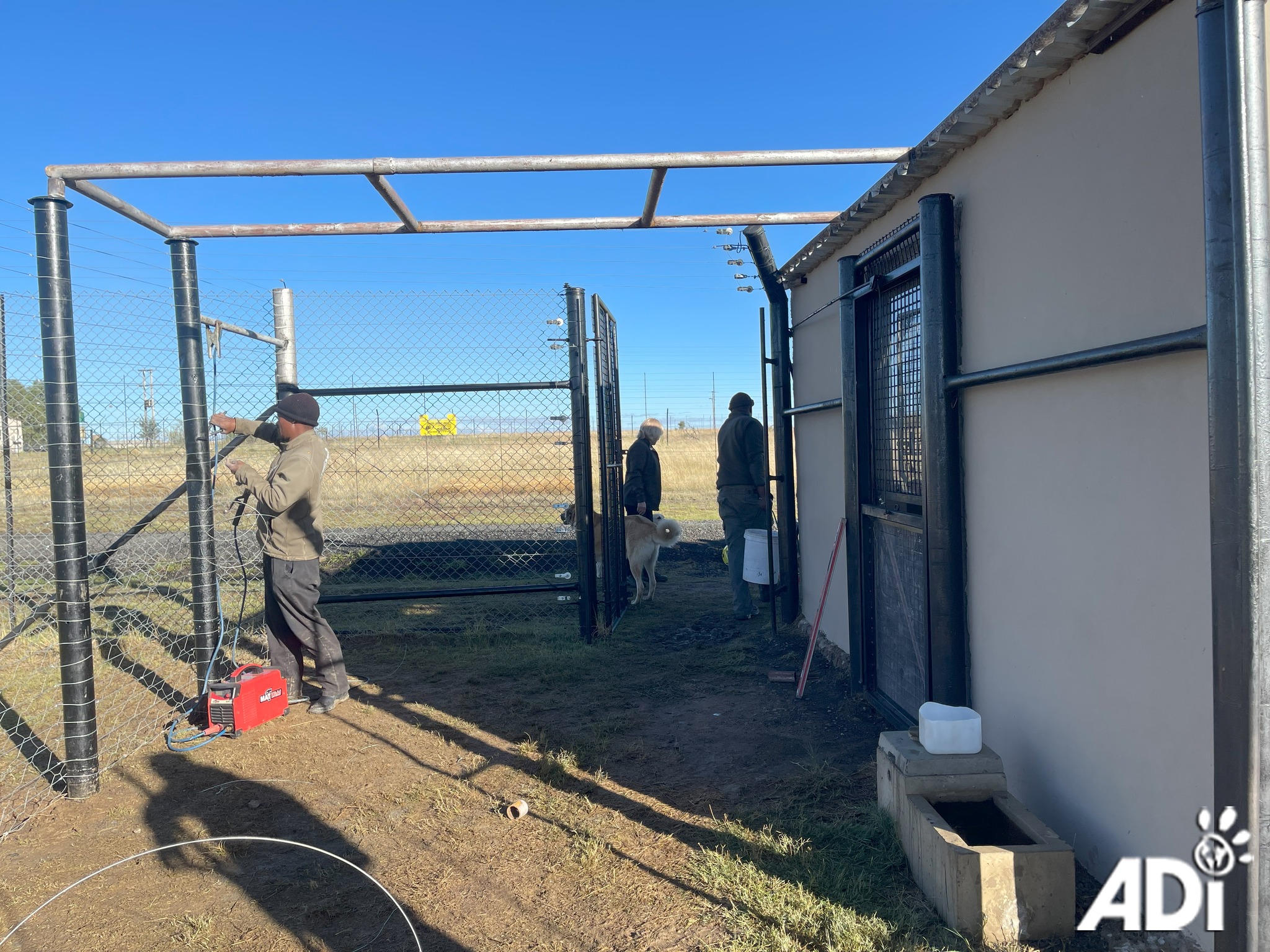 Since Ruben’s treatment will include some form of physiotherapy, over the weekend, the ADIWS team worked on adapting Ruben’s night house for his special needs. A gantry and walkway were added to the roof and over a new ‘hospital’ exercise area, so that an electric hoist can be mounted, which can be clipped to a harness to take the weight off Ruben’s legs and encourage him to exercise his muscles. We continue these preparations as we anxiously await the outcome of the MRI and examination, to finalize the adaptations needed for Ruben.