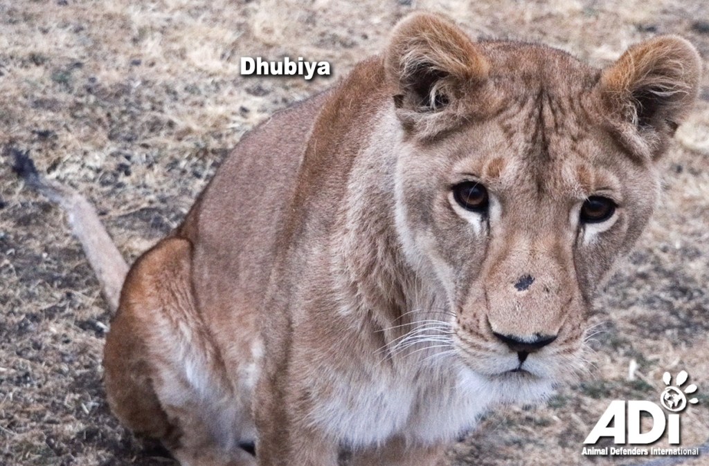 Our newest young residents rescued from the Kuwait illegal trophy pet trade, have settled in well, enjoying the sights and sounds of their African homeland. We hope Dhubiya, Aziza, Muheeb and Saif will form a pride, but this will take time. Dhubiya has already been living with Saif. Small and shy Aziza is in a separate habitat, but has been sitting close to the fence with neighbour Muheeb, and he is fascinated. She is also spending some time near Dhubiya in the habitat with Saif on the other side of her habitat. Saif and Dhubiya appear quite settled, so we will wait and see what Aziza wants.