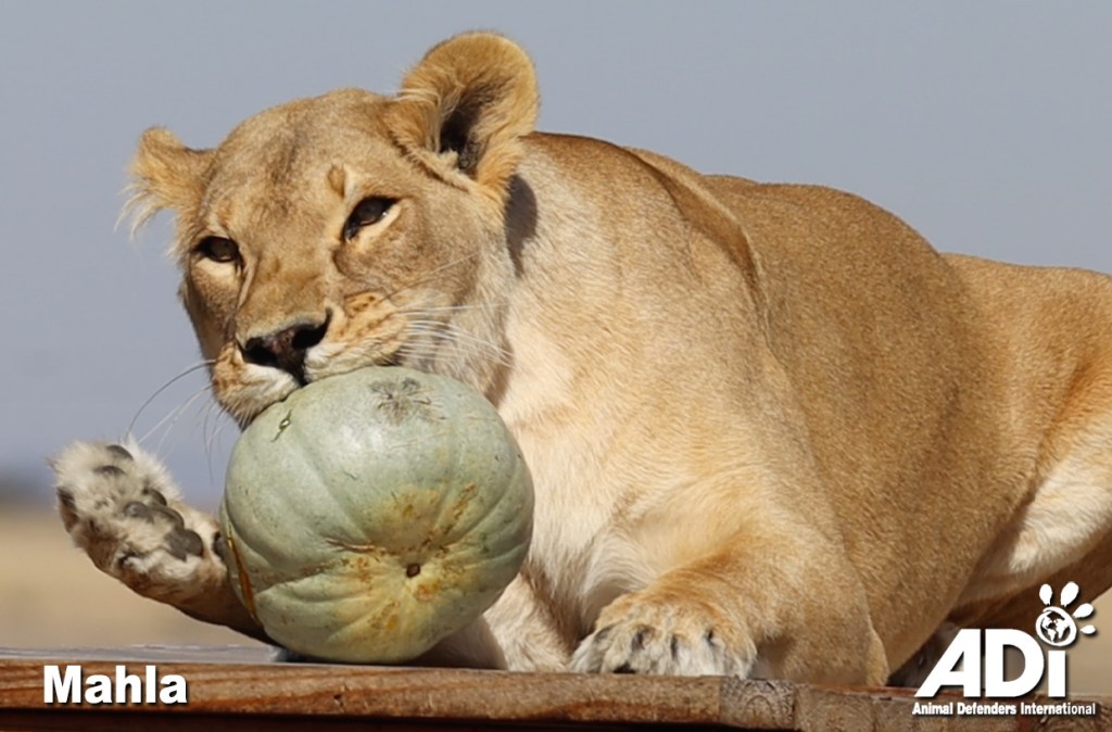 Thanks to our wonderful supporters, like yourself, our rescued lions, tigers, horses, pigs and others have been in fun paradise at the ADI Wildlife Sanctuary with pumpkins, hay bale castles and catnip scarecrows and we will be able to keep the fun going this month.