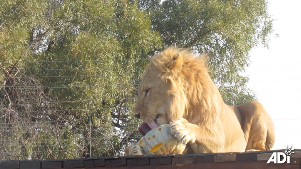 Once a trophy pet abandoned in Kuwait City, Saham now basks in the warmth of the sun relishing his pumpkin and ice lolly at the ADI Wildlife Sanctuary.