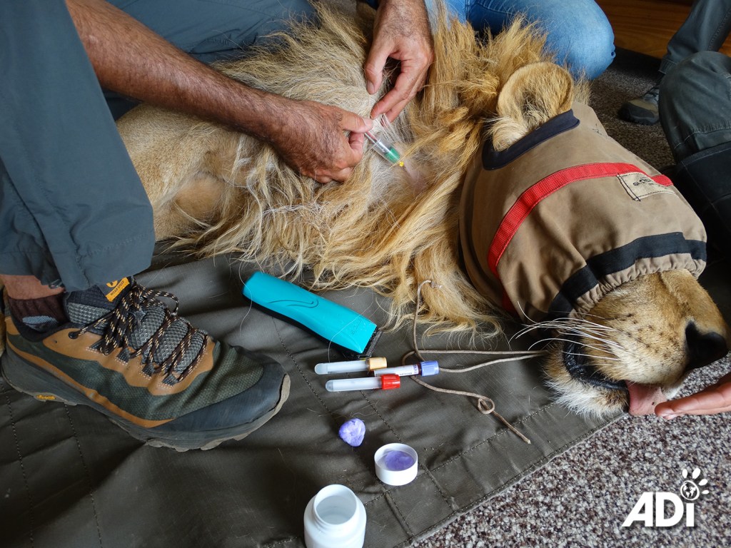 Last week, Dr Caldwell sedated Muheeb (one of the #Kuwait6 lions) at ADIWS, and took blood, urine and fecal samples following concern that although he is eating, he appears to be losing weight. He has previously had his regular internal and external parasite treatments. So, we await the test results. As Muheeb was an illegal pet before being taken in by Kuwait Zoo, we have limited health background.