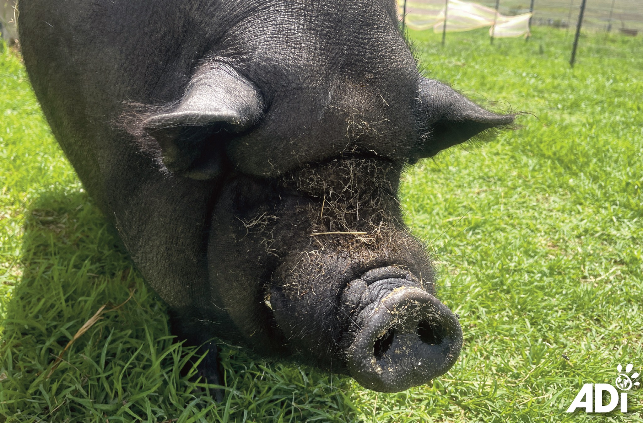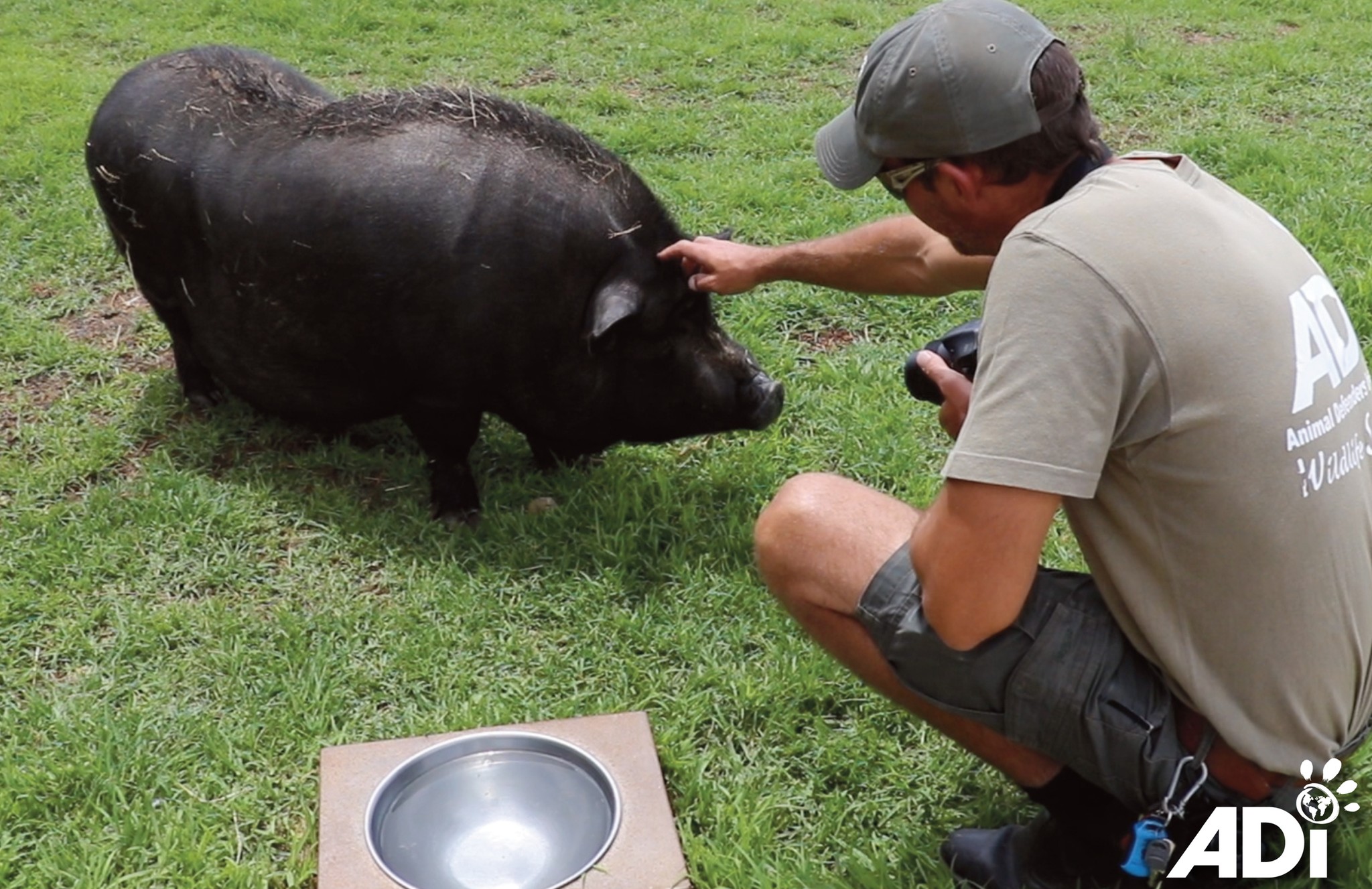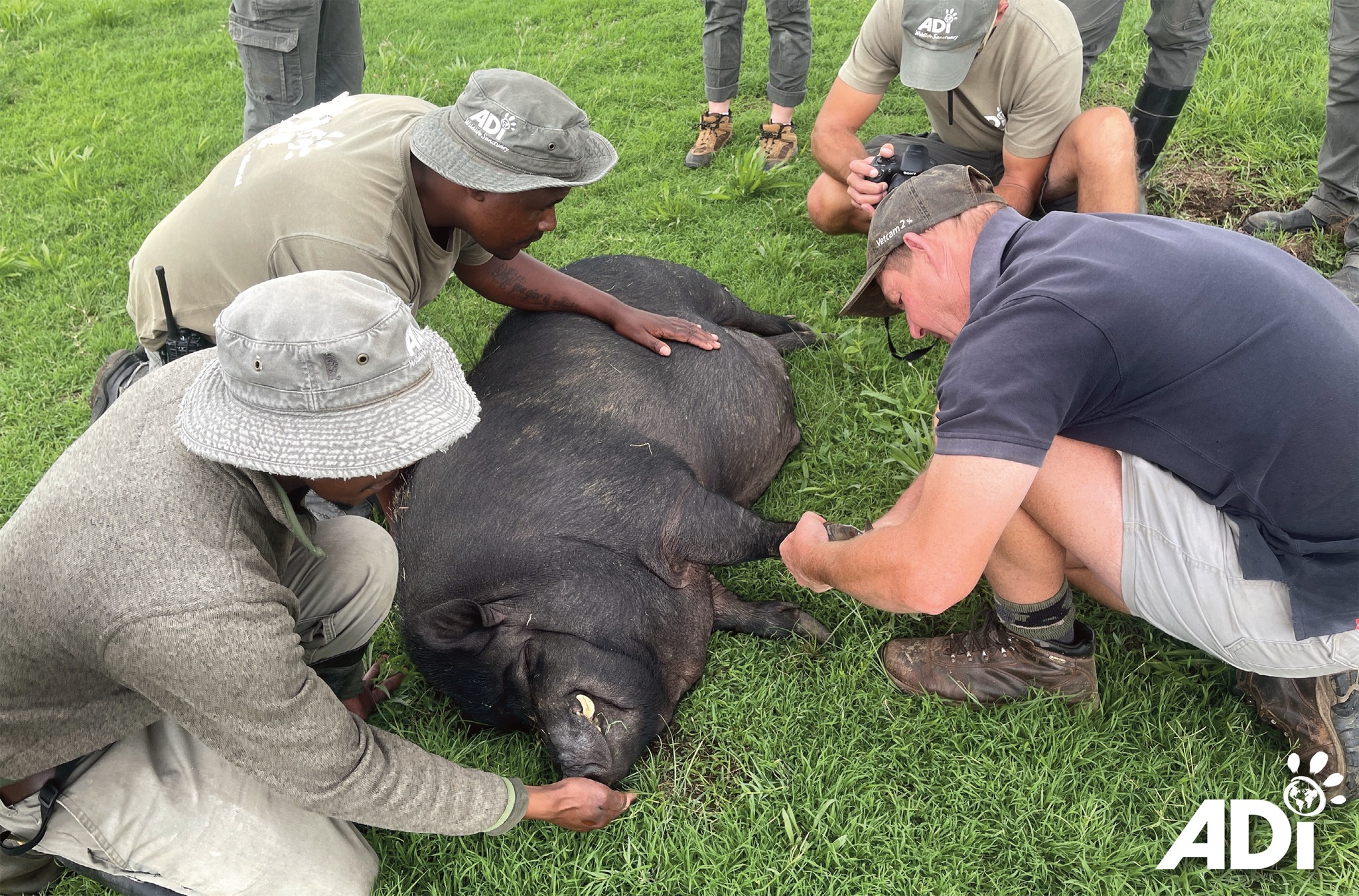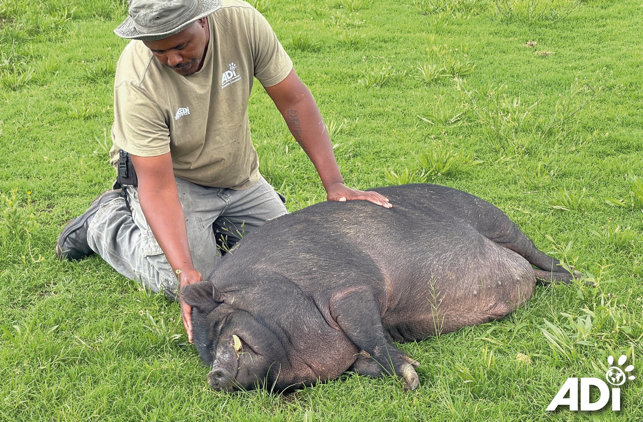 Dr JW Eksteen lightly sedated Roosevelt for the procedure then brought him around. Roosevelt and Churchill are two rescued pot-bellied pigs enjoying their freedom at the ADI Wildlife Sanctuary. Best known for rescued lions and tigers (many from circuses), ADIWS is also home to rescued goats, sheep, horses, donkeys, antelope, pigs, chickens, ducks and geese.