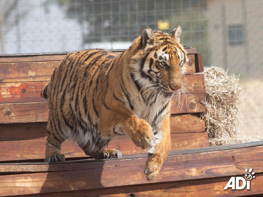 Jade was rescued by ADI at 18 months old from a circus in Guatemala on 13 June 2018, along with two lions (Tarzan and Tanya) and nine other tigers, including her sister Luna and 6-month-old siblings from another litter, Sun and Moon, the group becoming ‘the Spice Girls’, because of their rambunctious behaviors. Five months later, in November, we rescued the remaining tigers.