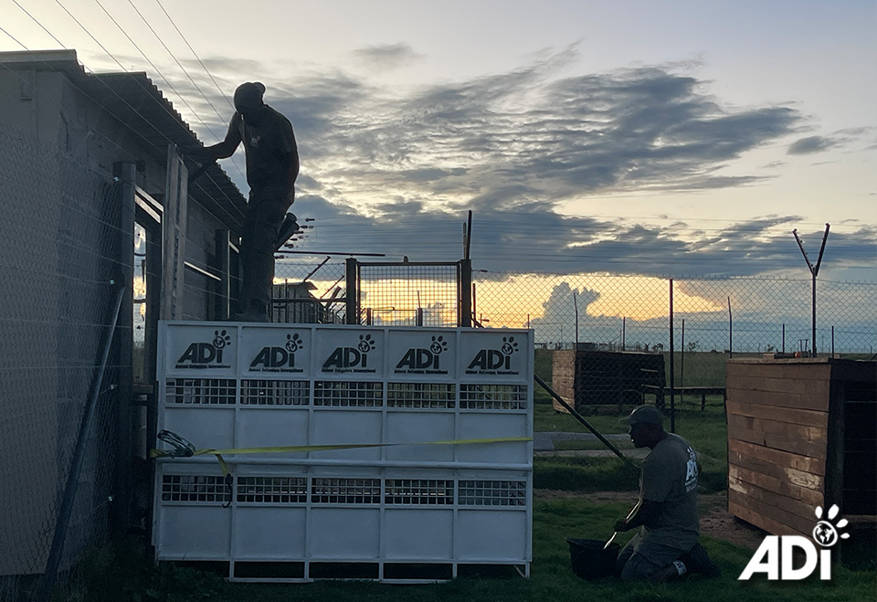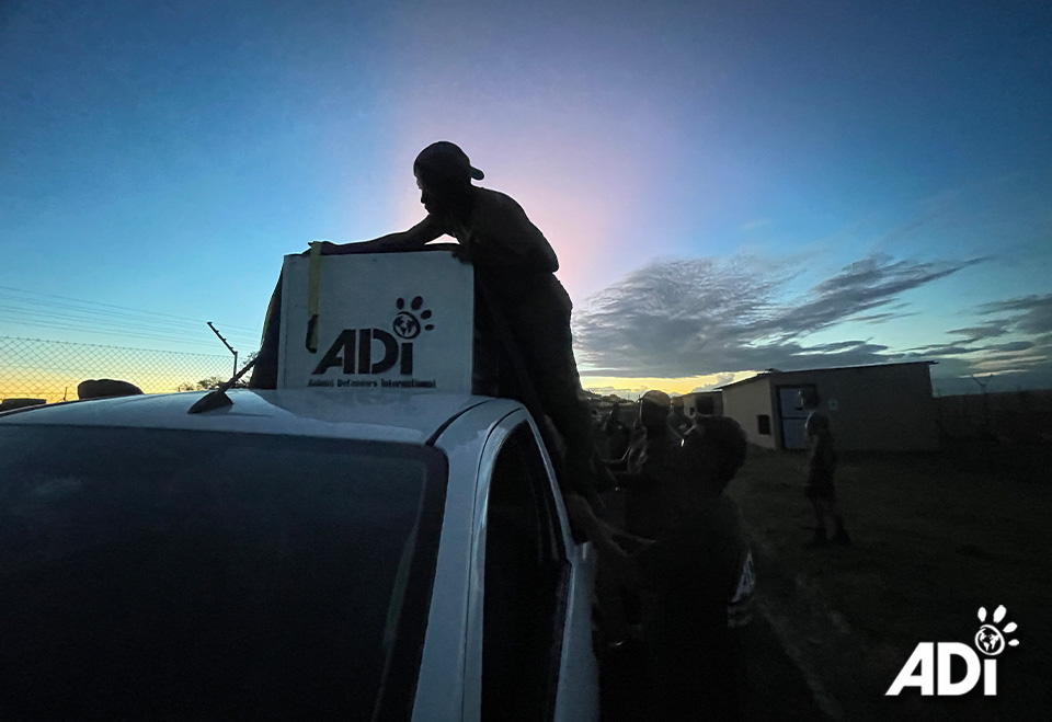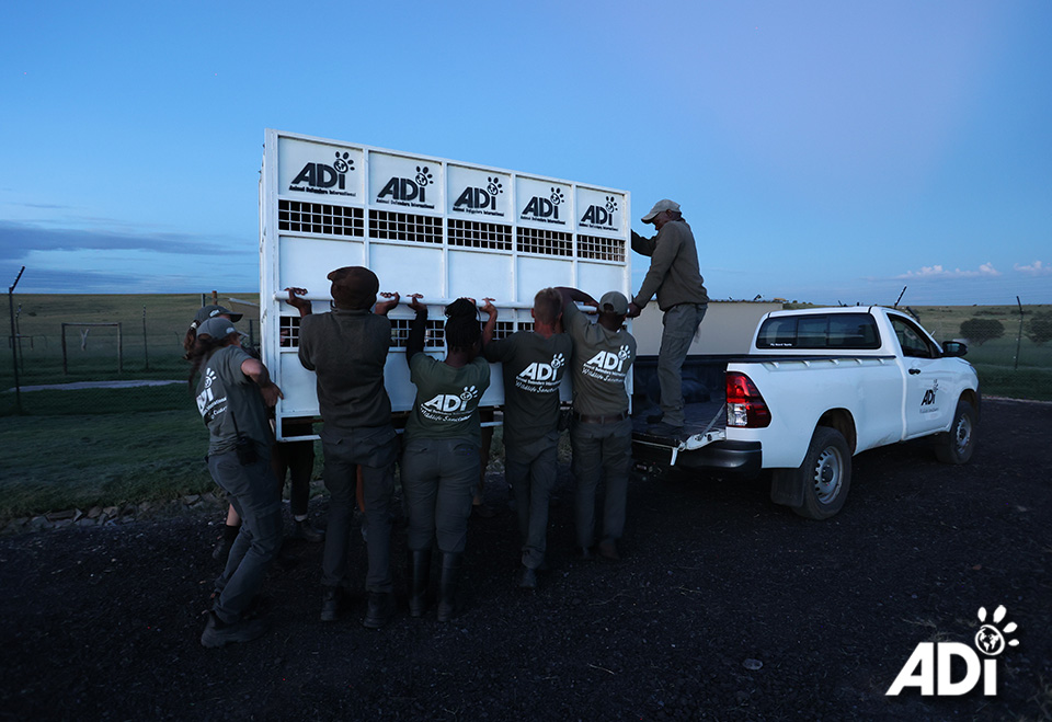 It is hoped that Dr Caldwell will be able to save the eye. Lupe was loaded in the evening before the drive to Old Chapel Veterinary Clinic – walking straight into the travel crate with encouragement by Johannes and Lefaso, a nice sign of the confidence we always maintain from the outset at ADIWS. We always aim to load animals awake and relaxed.