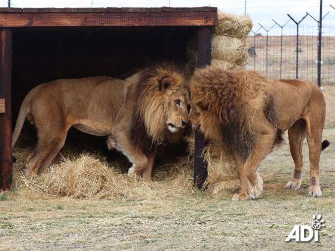 The brothers were born in a Guatemalan circus but Tomas was sent to a zoo. ADI rescued Kimba from the circus (following the country’s ban on animal circuses) and then the zoo surrendered Tomas to ADI. We reunited them at ADIWS and they have since been inseparable and were clearly not happy being apart while Tomas was in hospital.