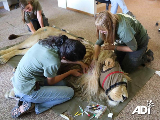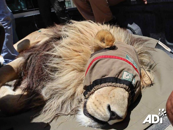 Dr Caldwell felt very proud of this South African lion and gave him a perfect body score – he’s not fat, that’s all muscle. His teeth also look perfect, urine was the right colour, so now, we just await blood test results.