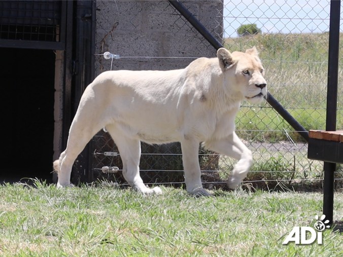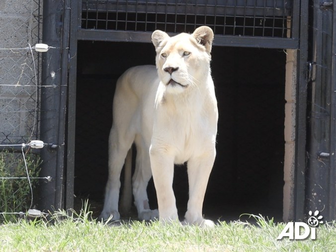 White lions like Elsa and Lei-ah look stunning to humans, but they are not a natural part of their normal environment, they are the result of a genetic mutation, like albinism. Tragically, this mutation is exploited by constantly inbreeding to create a curiosity for human entertainment, but this has cruel and disastrous effects on their health and well-being. Side effects of the inbreeding include deafness, partial or complete blindness and other health problems. Cynical breeders and exhibitors often claim they are conserving a rare species, that is not true. Never support such exhibits. Elsa and Lei-ah will remain with ADI until Panthera can rebuild which could be many months or even a year or more. These are unexpected additions to our family at ADIWS, but they are very welcome and of course, we did not hesitate when a friend’s home was burning. They are in our quarantine unit at present, but we will need to provide a longer-term space to keep the quarantine open for others in need, such as the 7 Guatemala tigers. Please help with the additional veterinary, food, and care costs.