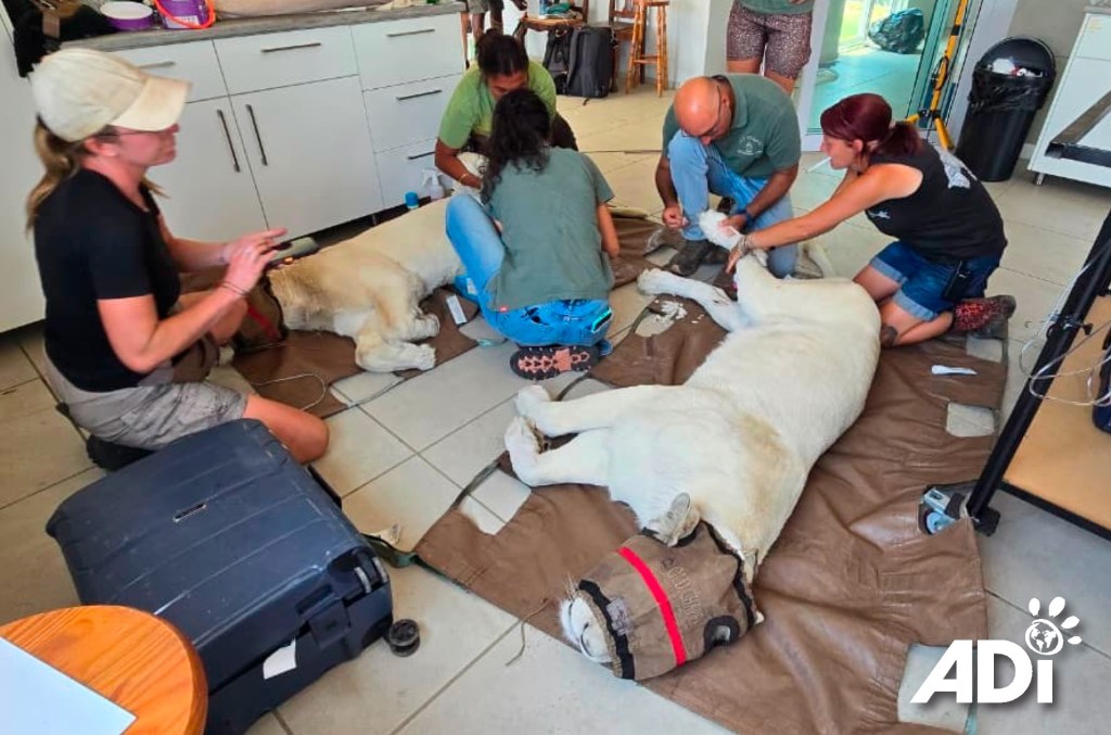 9-year-old female white lions, Lei-ah and Elsa have started their 15-hour road trip from Panthera Africa Big Cat Sanctuary, Western Cape to ADI Wildlife Sanctuary (ADIWS), Free State after being sedated and given a thorough health check by Dr Peter Caldwell. This week, Panthera Africa Big Cat Sanctuary was devastated by a wildfire and fires continue to flare up. The two lions will remain at ADIWS until reconstruction is completed.