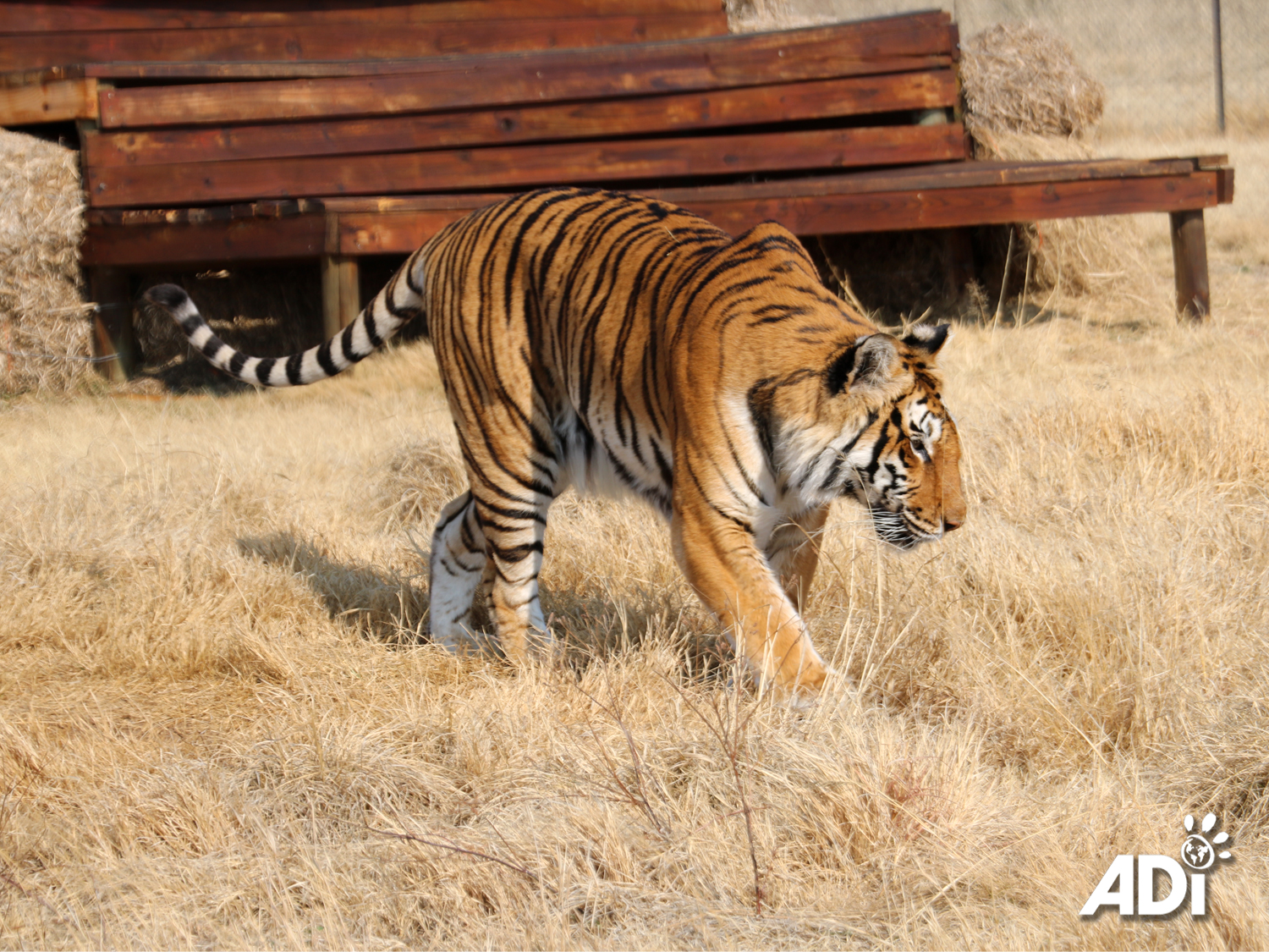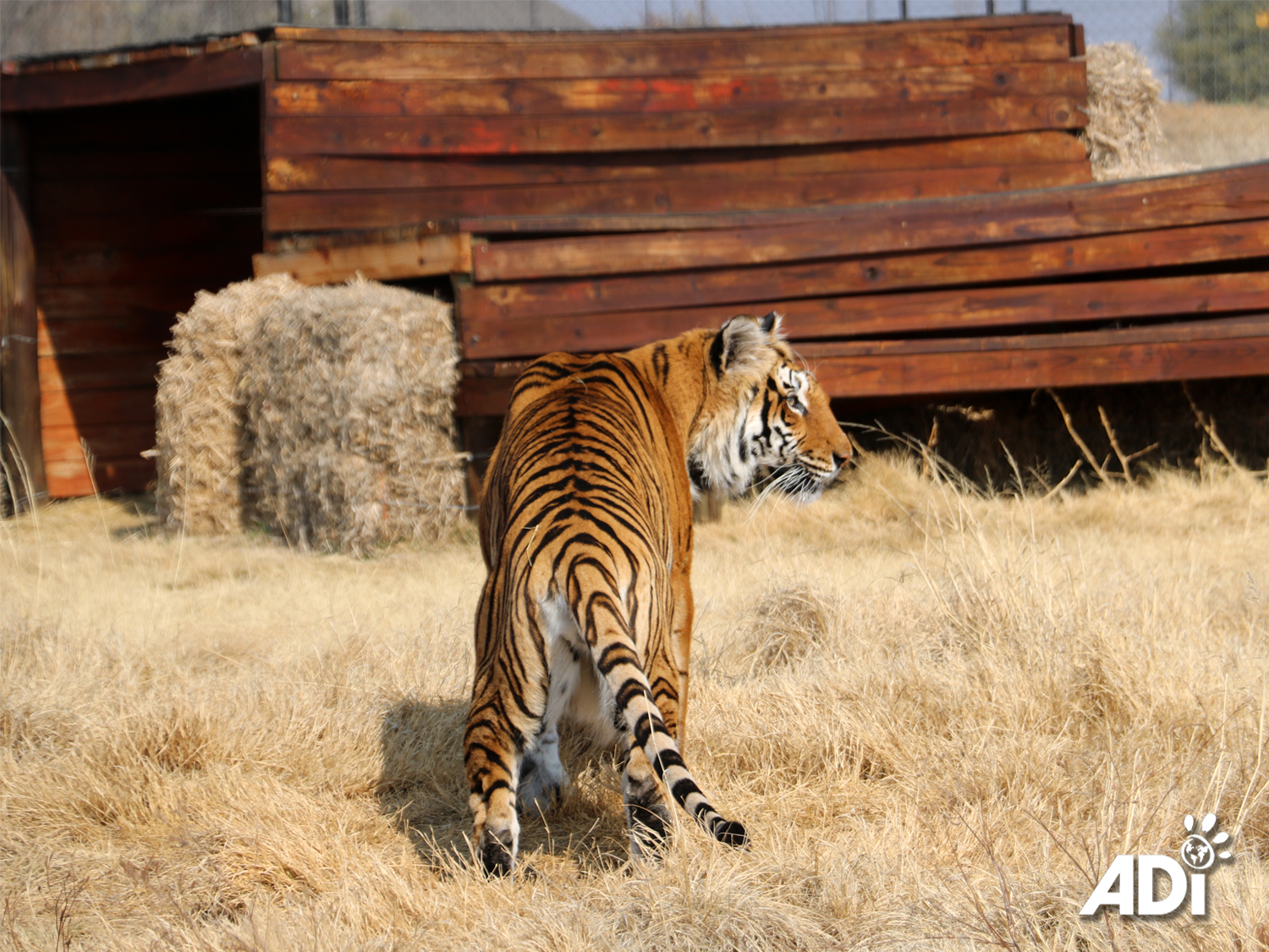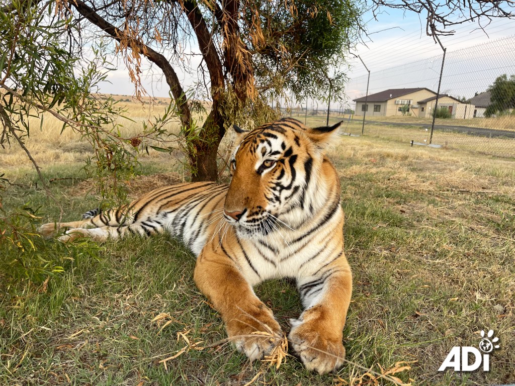 Something has caught Stripes’ attention at the ADI Wildlife Sanctuary. It could be his new lion neighbors Muheeb, Aziza, Saif, and Dhubiya – or perhaps the native wildlife, which our rescued tigers love to chase. This is life now for these big cats – one that allows them to express their instincts in natural, wild space.