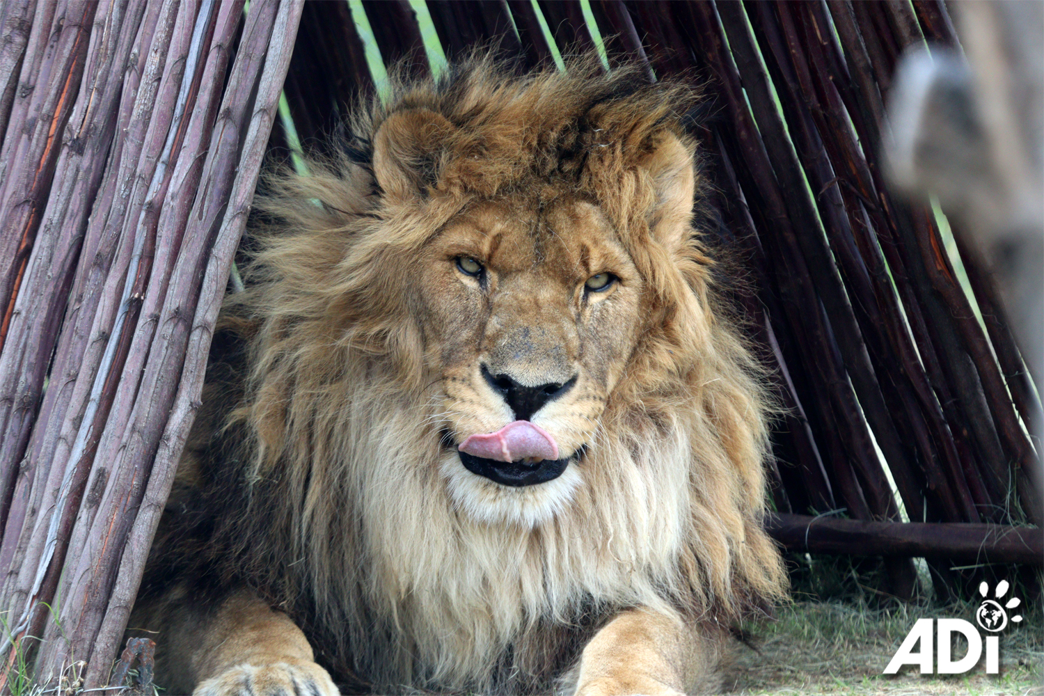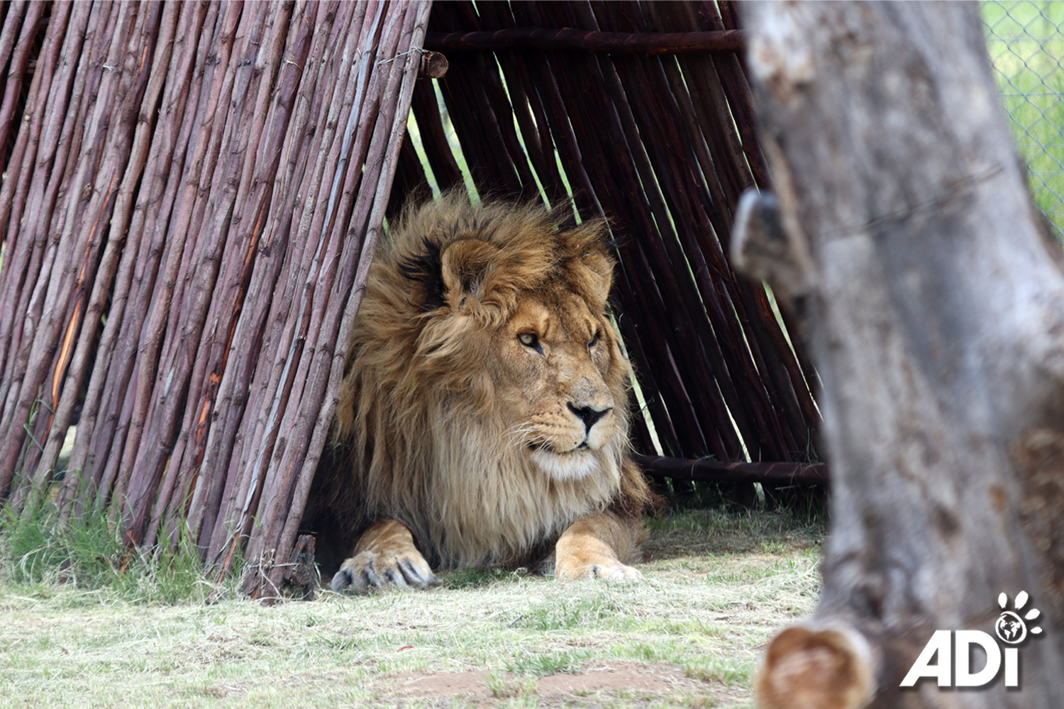 Giving a donation for enrichment at the ADI Wildlife Sanctuary pays for lots of different things – catnip sacks, giant balls, structures to hang toys up, A-frames for snoozing and watching the world. Toys for lions and tigers need to be regularly repaired and replaced – destruction is half their fun! Chino and Coco use their A-frames as gym equipment and Kesari likes to lean on his until he flattens it!