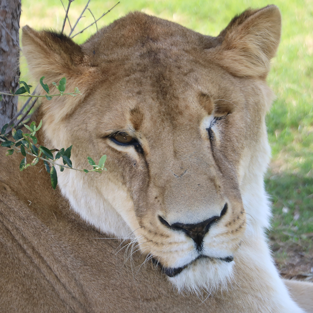 Kesari had been unable to join a family group at Pretoria Zoo and was living alone. The Zoo did not want to put him up for auction in case he arrived in the sights of a trophy hunter, and so waited two years until our friends at Captured In Africa Foundation contacted ADI as we were building ADIWS in 2019 and we gave him his forever home. Shy and cautious when he arrived at the sanctuary, he has grown in confidence. Our largest lion resident, Kesari spends his days lounging, roaming his 2.5 acre habitat, and joining the lion song with that incredible roar he kept hidden for his first few days! Learn more about Kesari’s story here.