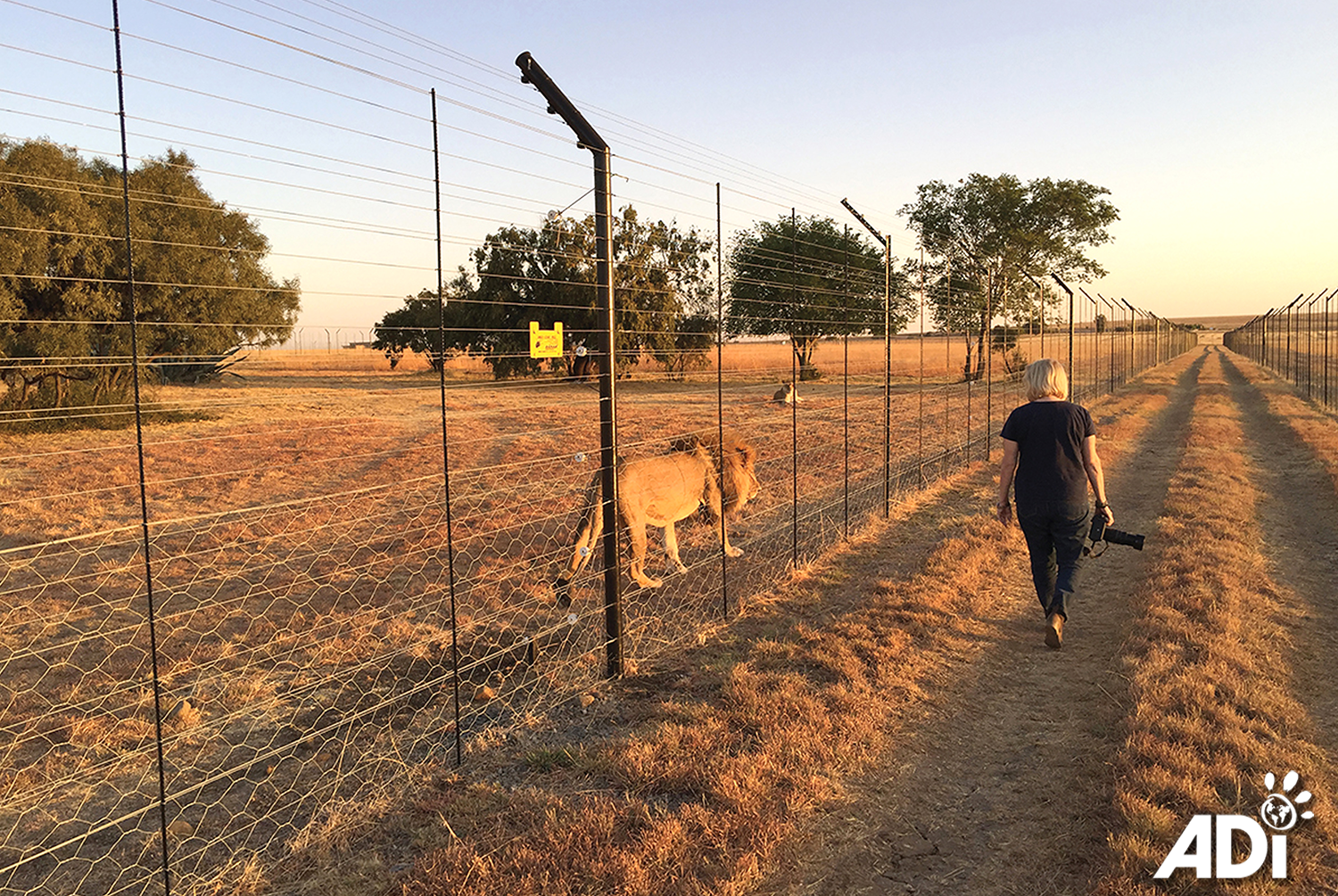 Beautiful lioness Easy enjoying the African sunset in her Camo Habitat at the ADI Wildlife Sanctuary. On this day nine years ago, Easy and the other eight lions ADI rescued from a circus in Bucaramanga, Colombia, were signed into our care. Among them was Bumba – he and Easy are the last surviving members of our Colombian pride.