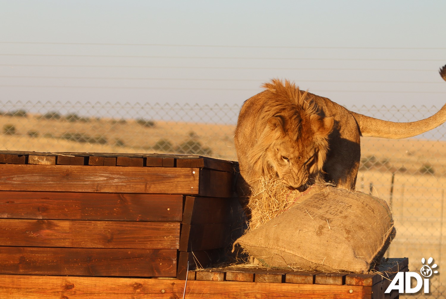 Muheeb is so quiet like Ruben, we wanted him to inherit Ruben’s habitat. It had originally been planned for him and Aziza to be next door to Ruben. Muheeb will be in this section for two weeks’ quarantine and then go out into the main habitat. These are the ‘introduction’ habitats before they move to their permanent space. We really hope that Muheeb will make friends with Aziza next door, and if all goes really well, perhaps all four of Muheeb, Aziza, Dubhiya and Saif will be together. It will take a few months. Not sure we have enough catnip punchbags – he demolishes them so quickly😂 Just like Ruben, he loves these bags and carries them into his house to watch over them.