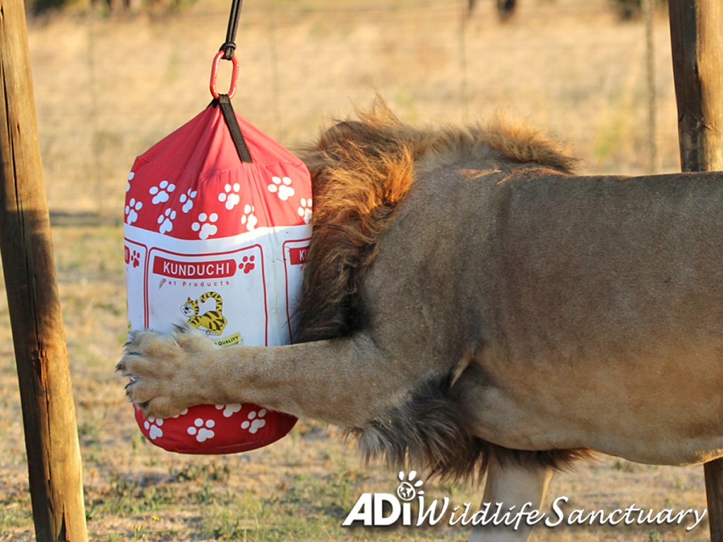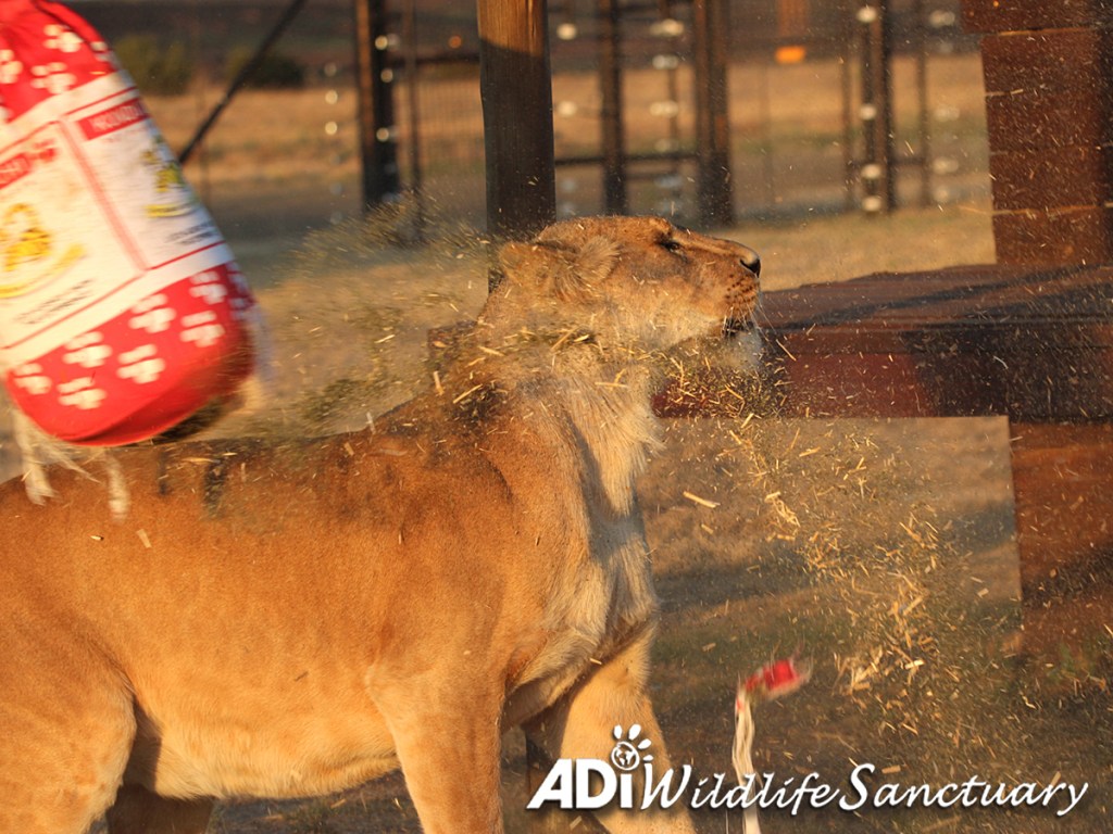 You can see Ruben still loves his catnip treats! Ruben was rescued from years of isolation and confinement in a private zoo in Armenia. He arrived at the ADI Wildlife in August with difficulties walking and keeping his balance. Every day, the ADI Wildlife Sanctuary Team give him different forms of enrichment to keep him engaged, moving and having fun. And he is loving his physiotherapy!
