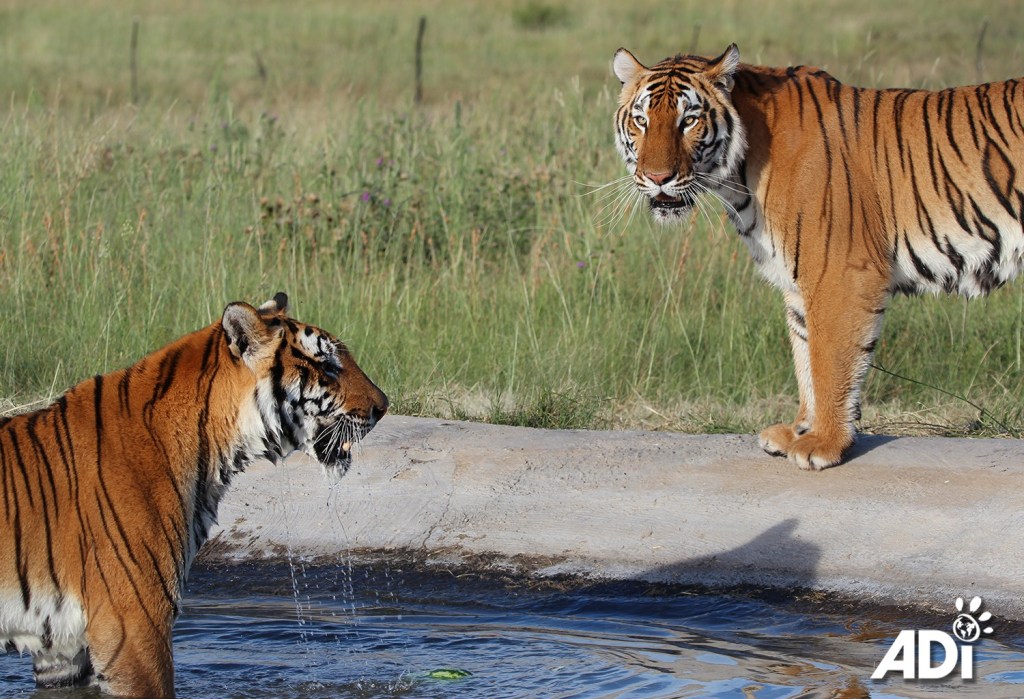 The circus had been in hiding for months, but on November 10th 2018, an ADI team entered a junkyard with police and wildlife officials to rescue six month old Max and Stripes and four other tigers – all destined for the ADI Wildlife Sanctuary in South Africa. Given a nutritious diet since the rescue the boys have grown bigger than all of the adult tigers saved that day. Today, they are confident, playful, roam acres of natural habitat with pools in Kakato Habitat and still live next to their mom Lupe.